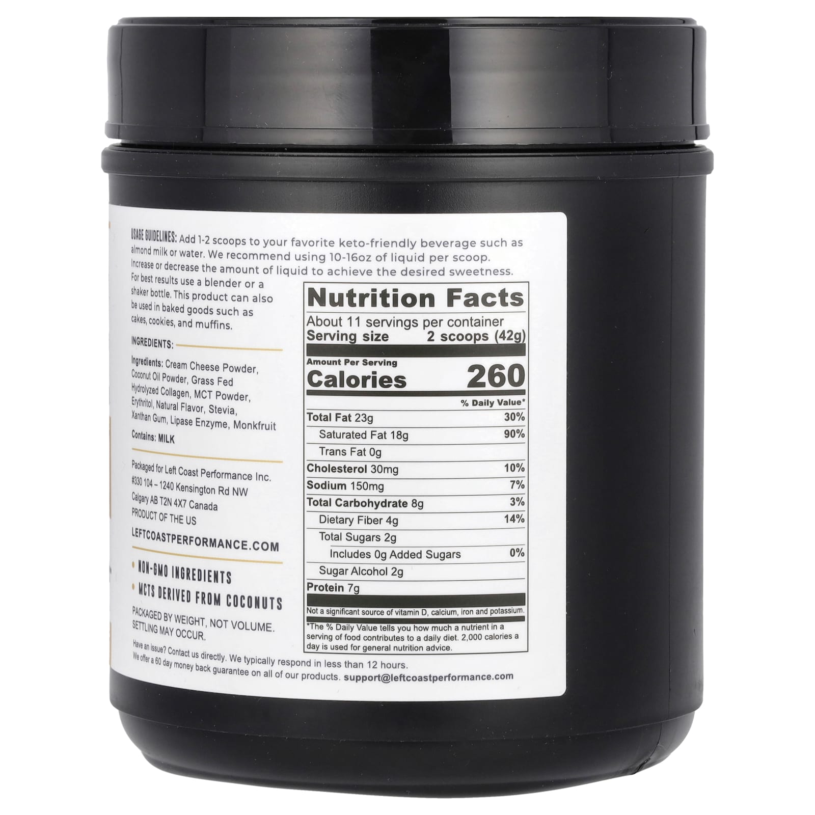 Хотя этот продукт не является порошком MCT, он действительно содержит значительное количество MCT. Если вы новичок в кетодиете, а также в порошке или масле MCT, начните с половины порции и постепенно увеличивайте дозу, чтобы избежать расстройств пищеварительной системы.