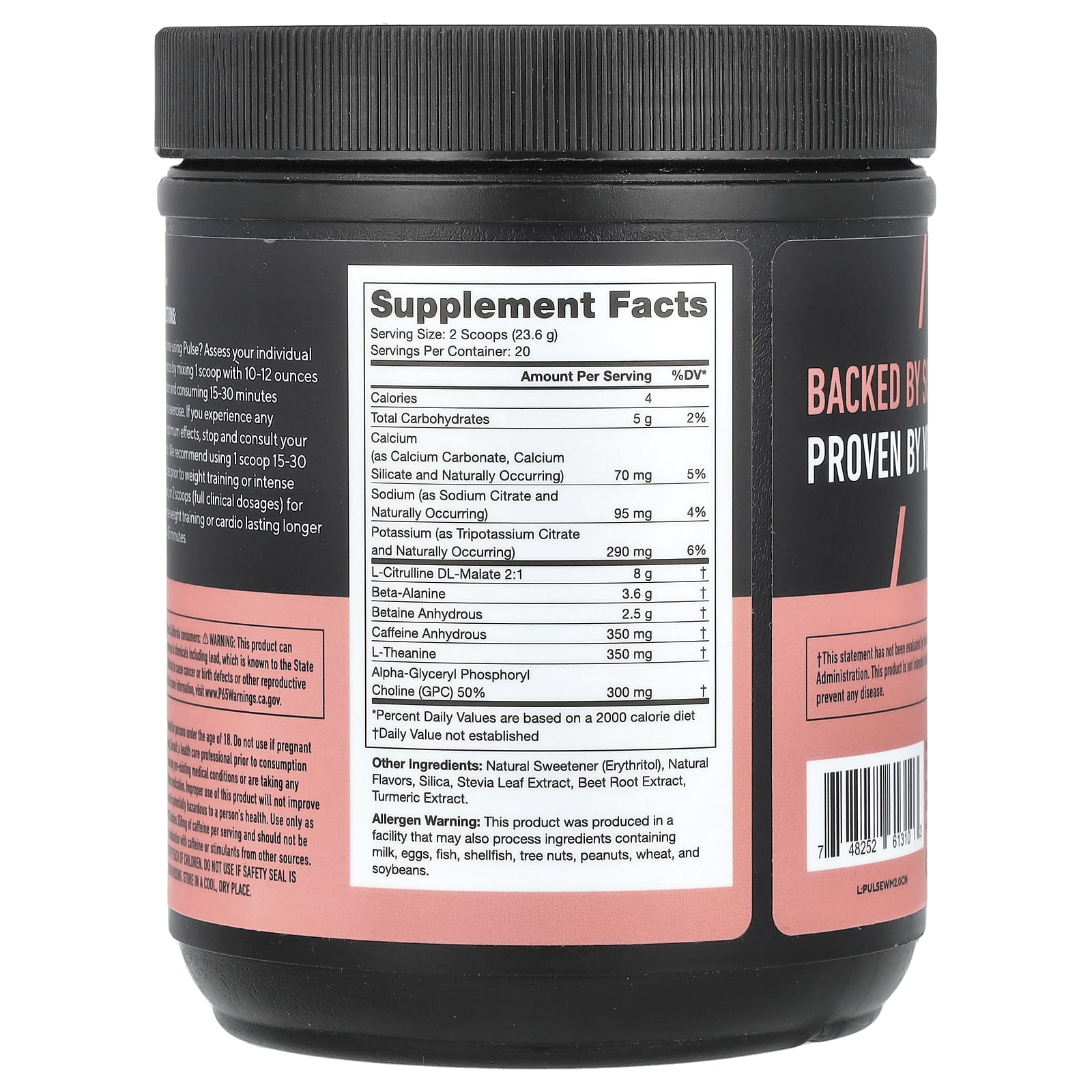 Впервые пользуетесь Pulse? Оцените свою переносимость, смешав 1 мерную ложку с 10–12 унциями воды и выпив за 15–30 минут до тренировки. Если вы почувствуете какие-либо неоптимальные эффекты, прекратите прием и обратитесь к врачу. Мы рекомендуем принимать по 1 мерной ложке за 15–30 минут до силовой тренировки или интенсивной кардиотренировки, или 2 мерные ложки (в полной клинической дозировке) для интенсивных силовых тренировок или кардиотренировок продолжительностью более 45 минут.