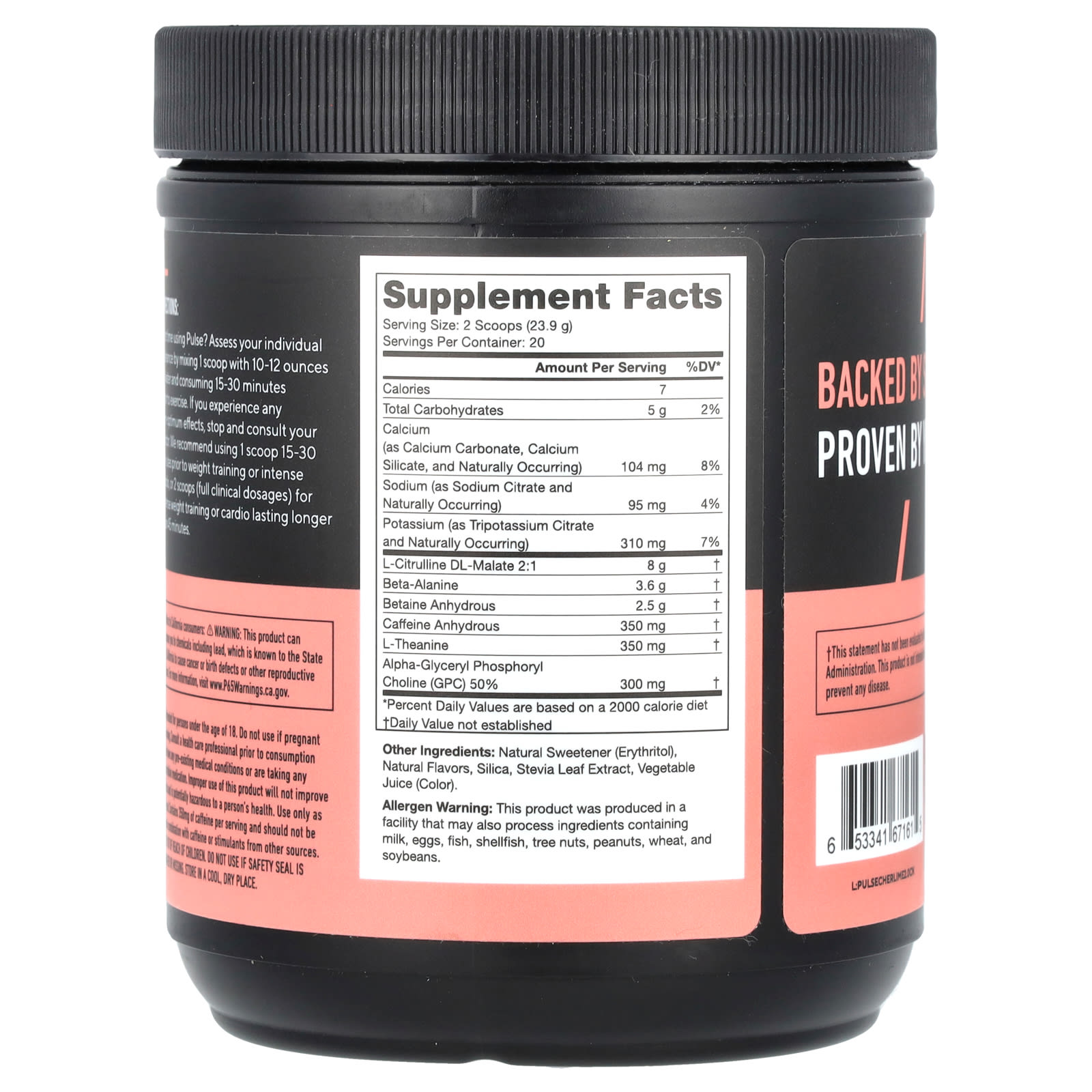 Впервые пользуетесь Pulse? Оцените свою переносимость, смешав 1 мерную ложку с 10–12 унциями воды и выпив за 15–30 минут до тренировки. Если вы почувствуете какие-либо неоптимальные эффекты, прекратите прием и обратитесь к врачу. Мы рекомендуем принимать по 1 мерной ложке за 15–30 минут до силовой тренировки или интенсивной кардиотренировки, или 2 мерные ложки (в полной клинической дозировке) для интенсивных силовых тренировок или кардиотренировок продолжительностью более 45 минут.
