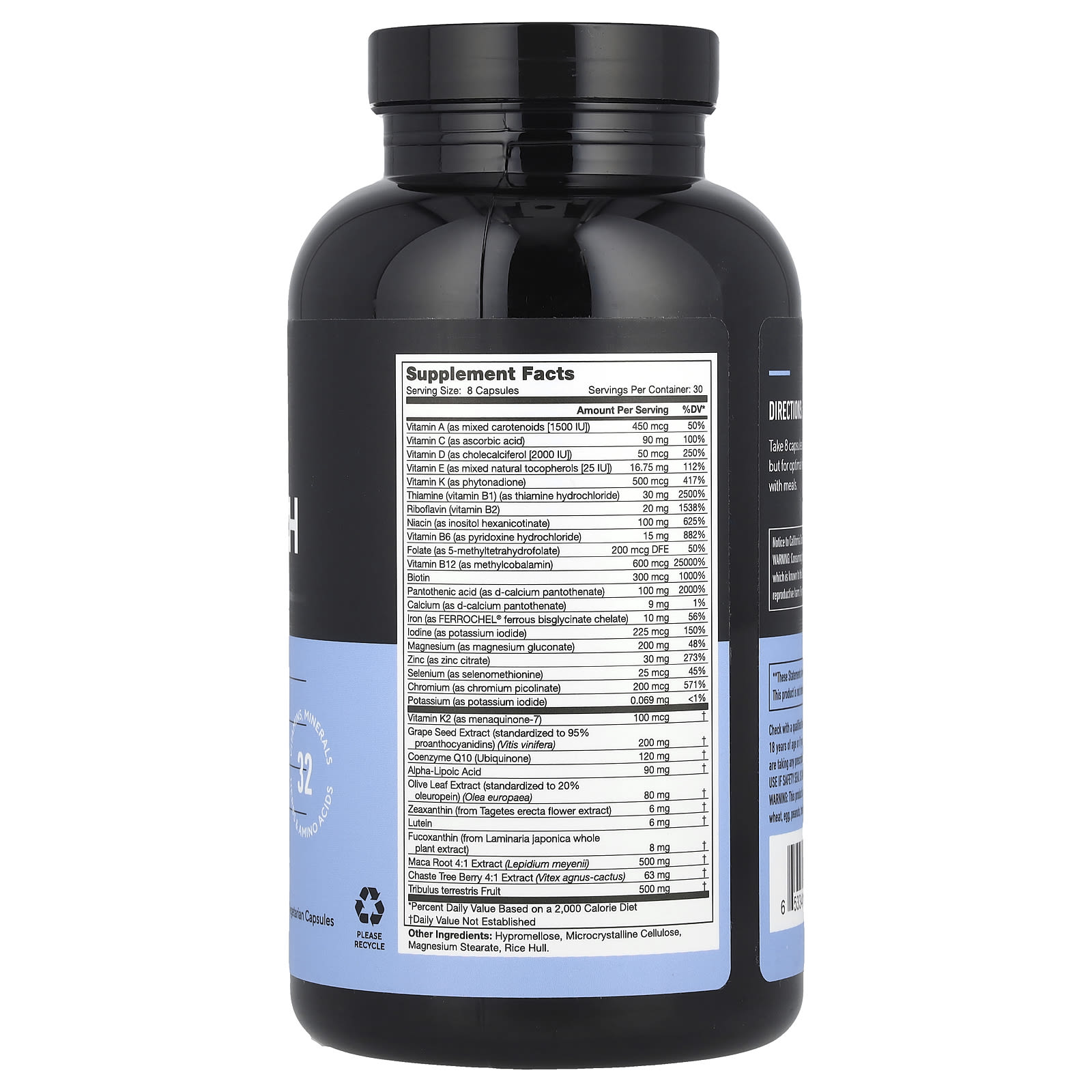 Получите единственный натуральный мультивитаминный комплекс для занятий спортом с клинически эффективными дозами из 22 незаменимых витаминов и минералов, а также 10 ингредиентов, которые, как научно доказано, улучшают здоровье, работоспособность и настроение, а также снижают стресс, усталость и беспокойство.