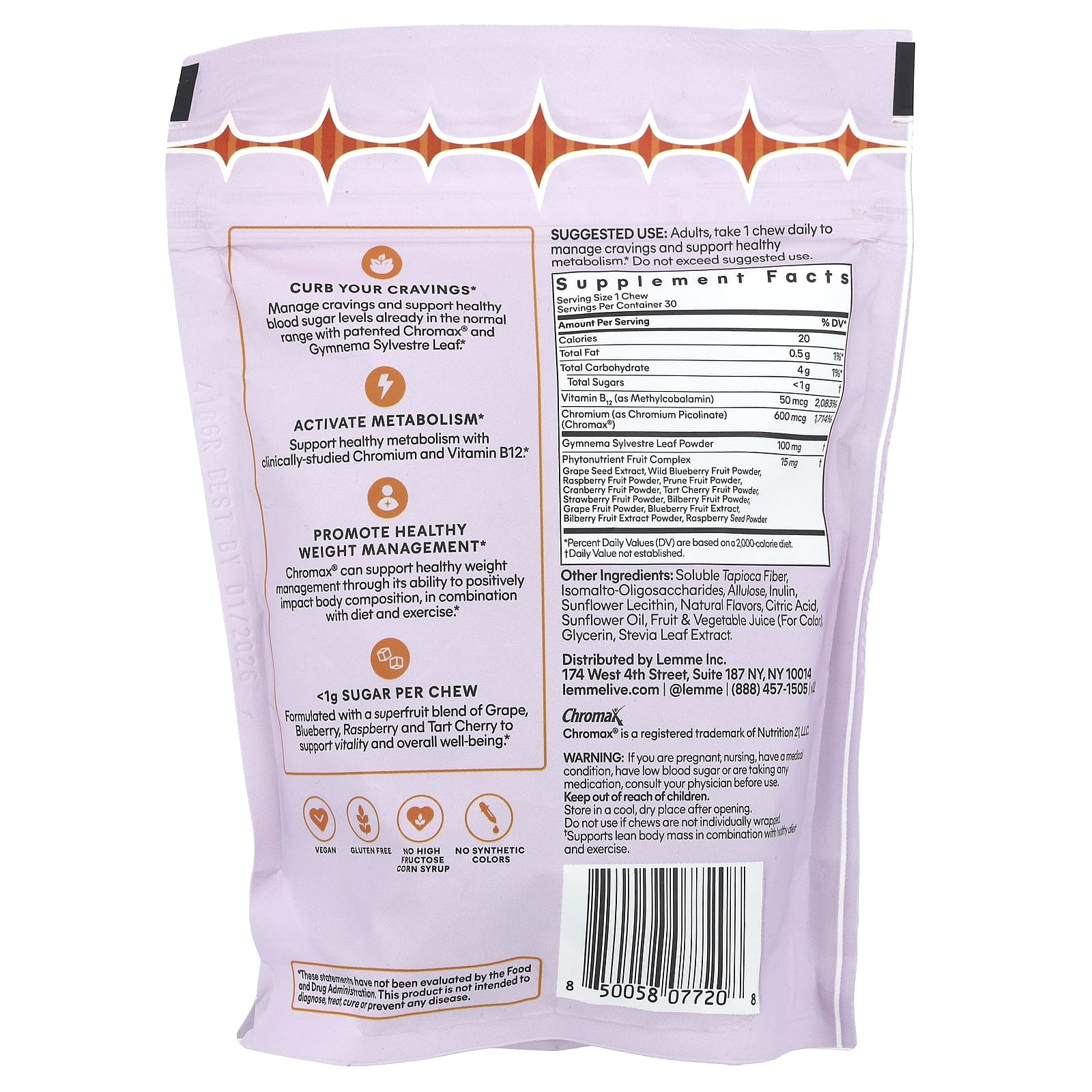Управляйте аппетитом и поддерживайте нормальный уровень сахара в крови с помощью запатентованных продуктов Chromax® и Gymnema Sylvestre Leaf.
