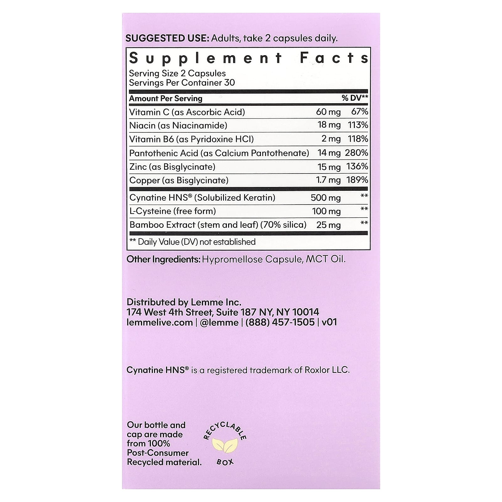 В состав Lemme Grow входят клинически изученные ингредиенты, которые способствуют росту более густых и пышных волос за 12 недель, а также комплекс без биотина, предназначенный для людей с чувствительными кожей и волосами.