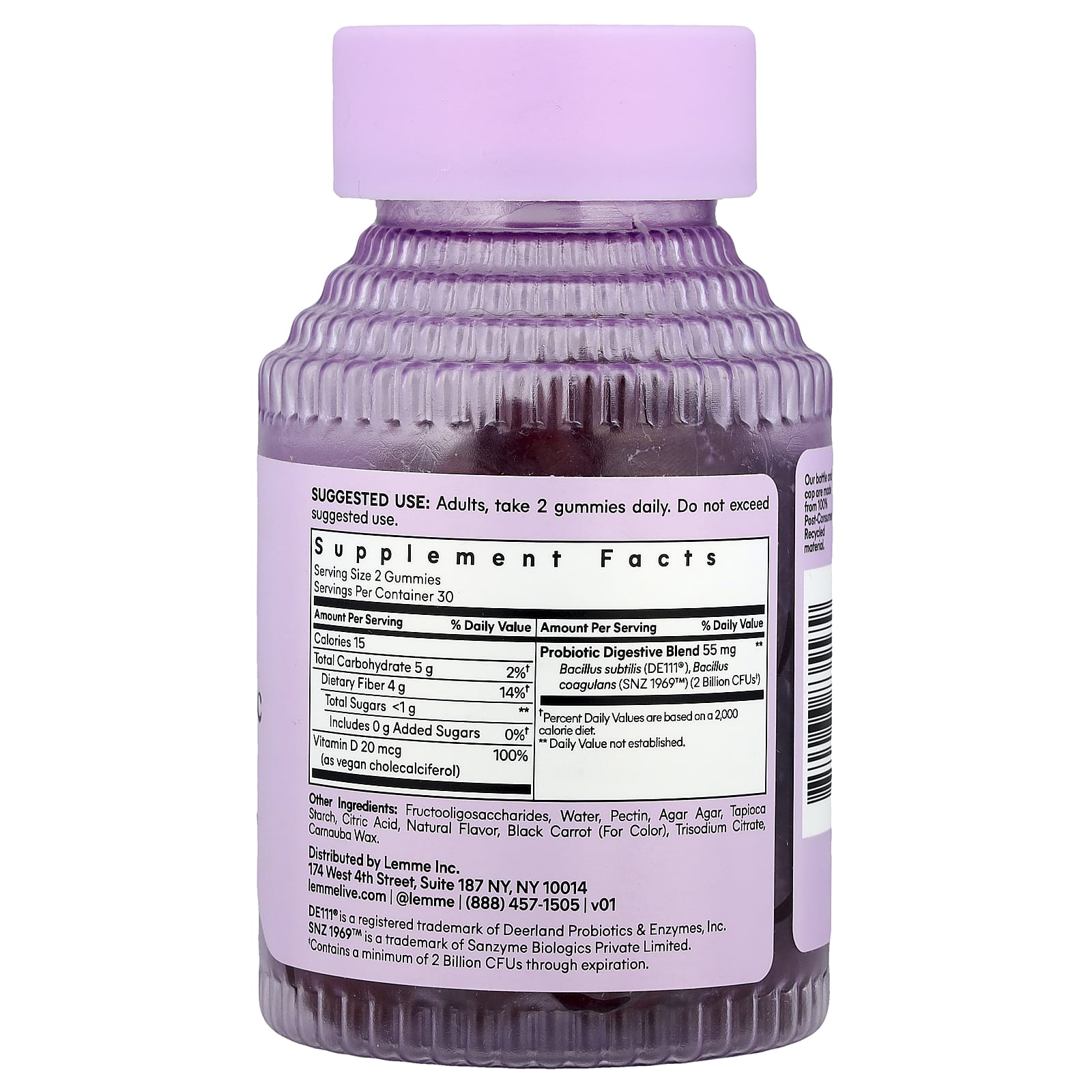 Фруктоолигосахариды, вода, пектин, агар-агар, тапиоковый крахмал, лимонная кислота, натуральный ароматизатор, черная морковь (для цвета), тринатриевый цитрат, карнаубский воск.