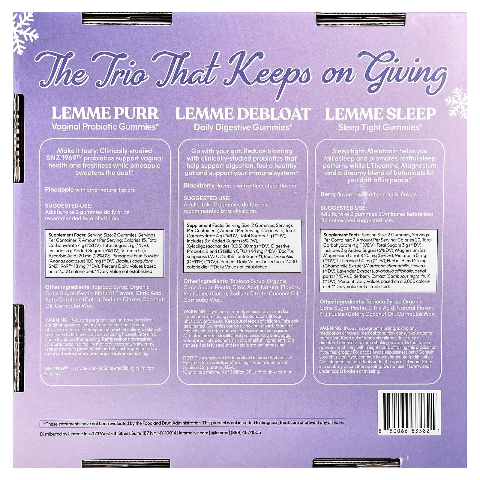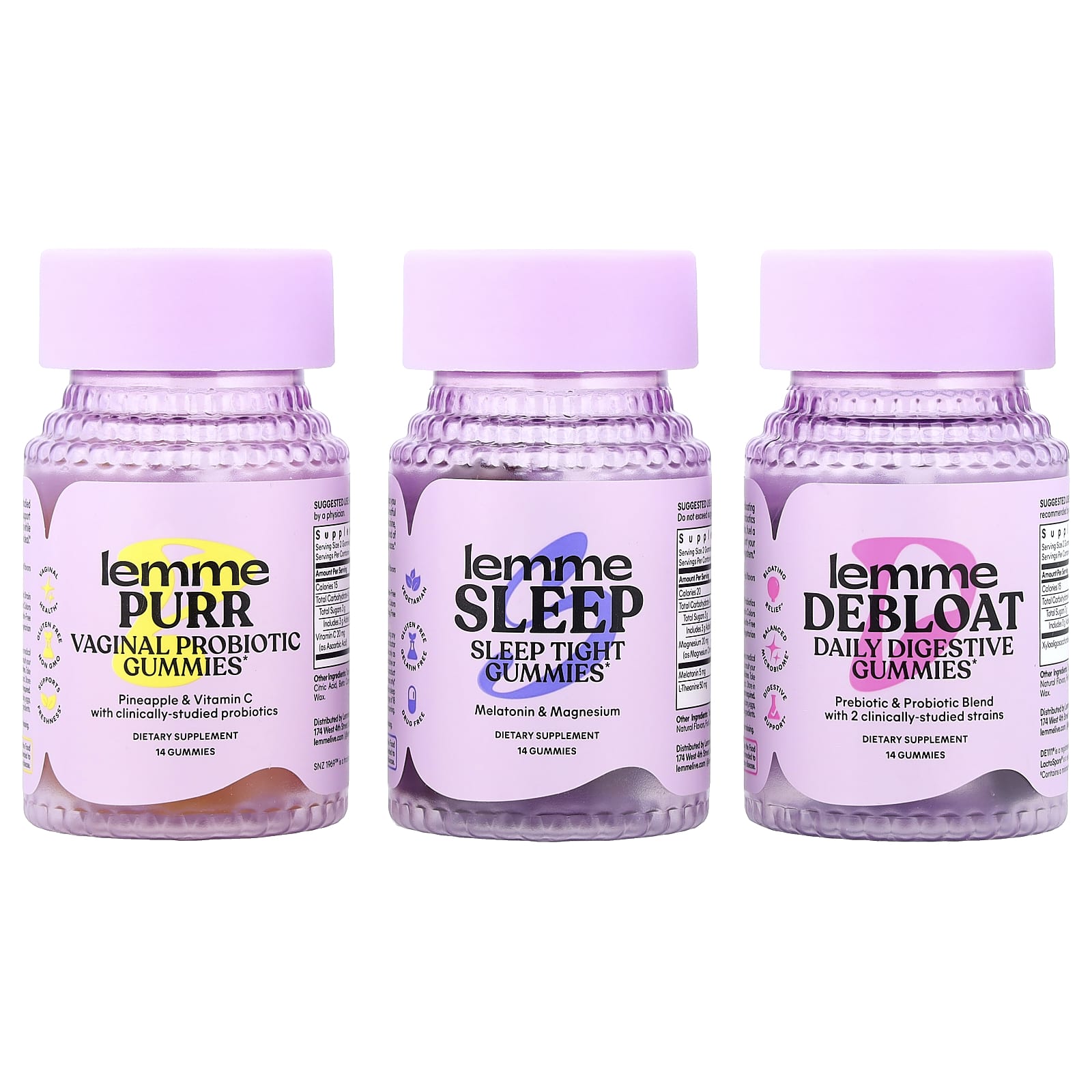 Lemme Debleat, Жевательные таблетки для ежедневного пищеварения: Тапиоковый сироп, органический тростниковый сахар, пектин, лимонная кислота, натуральные ароматизаторы, свекольный сок (краситель), цитрат натрия, кокосовое масло, карнаубский воск.