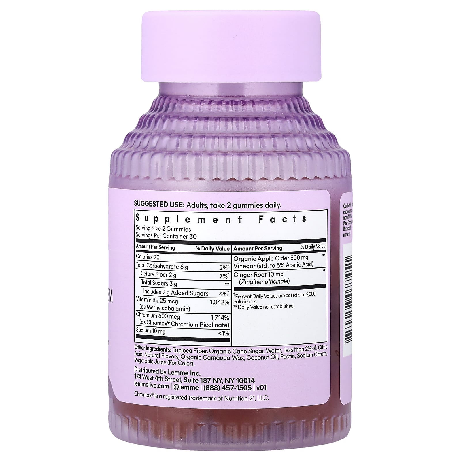 Активирует метаболизм. Поддерживает сухую мышечную массу тела и способствует здоровой структуре тела с помощью клинически изученного Chromax®.‡ Содержит яблочный уксус и метилированный витамин B12.