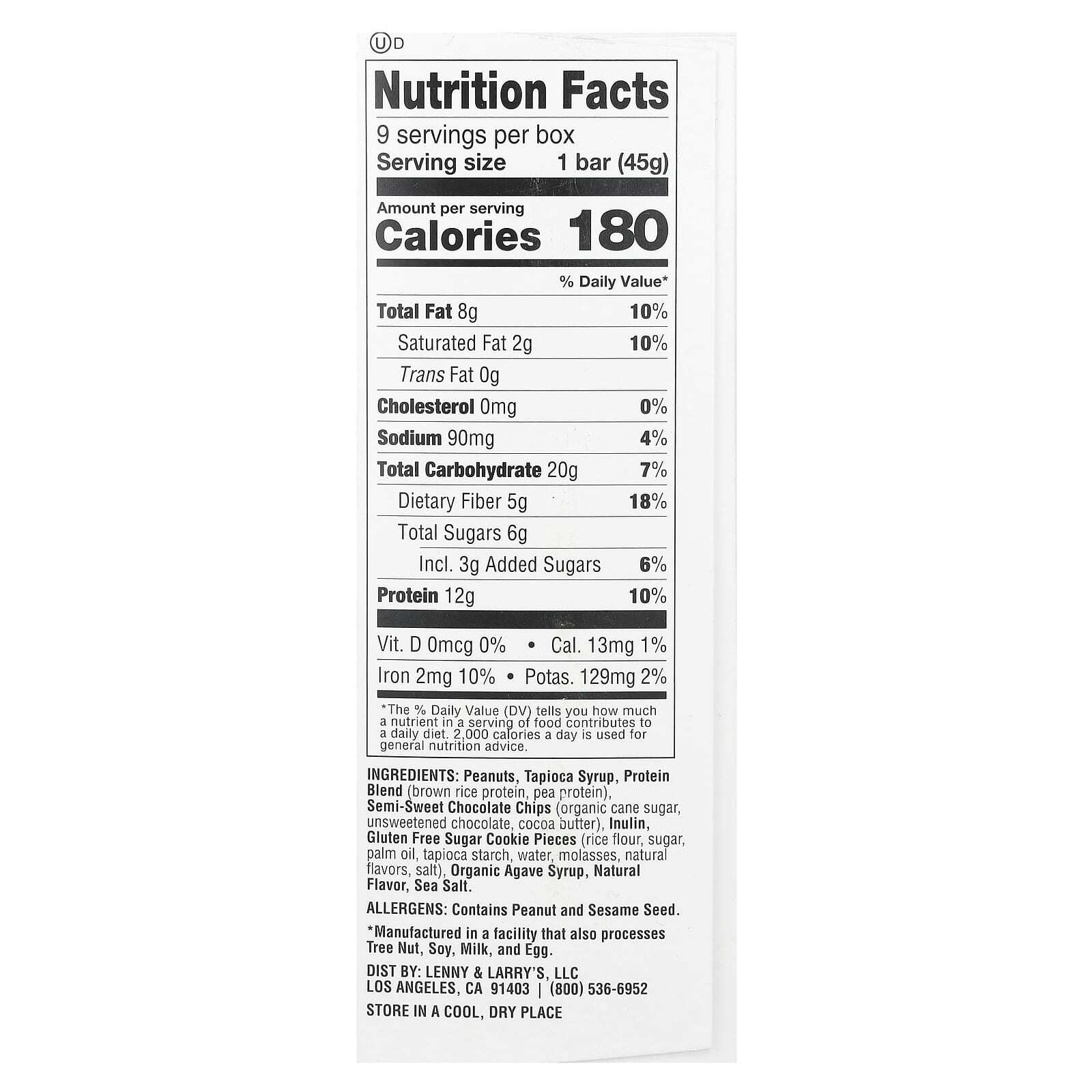 У Ленни & Larry's, мы приносим кружки веселья в мир квадратов. Поэтому, когда мы задумали создать снек-бар, это не могло быть просто скучным баром. Это должен быть Cookie-fied ™: мягкий жевательный батончик с восхитительными хрустящими кусочками печенья. Эта восхитительная закуска состоит из 12 г растительного белка и 5 г пребиотической клетчатки, без глютена и 6 г сахара.