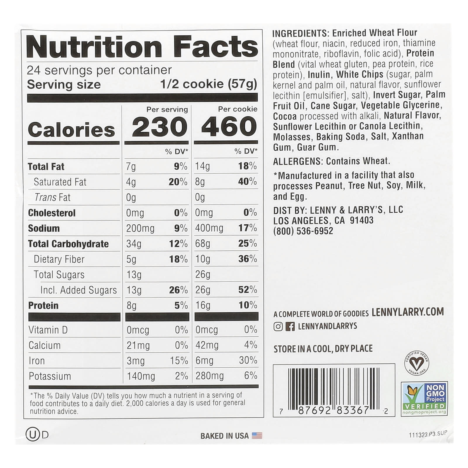 Обогащенная пшеничная мука (пшеничная мука, ниацин, восстановленное железо, тиамина мононитрат, рибофлавин, фолиевая кислота), протеиновая смесь (витальная пшеничная глютен, гороховый протеин, рисовый белок), инулин, белые чипсы (сахар, пальмоядровое и пальмовое масло, натуральный ароматизатор, подсолнечный лецитин [эмульгатор], соль), инвертный сахар, пальмовое масло, тростниковый сахар, растительный глицерин, обработанное щелочью какао, натуральный ароматизатор, подсолнечный лецитин или рапсовый лецитин, патока, пищевая сода, соль, ксантановая камедь, гуаровая камедь.