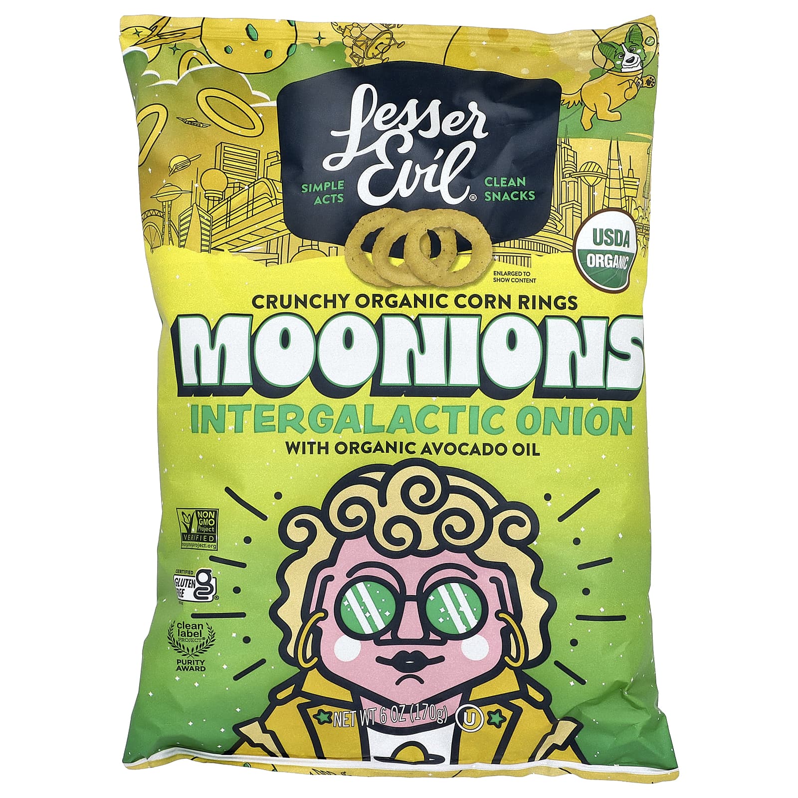 Последний раз мы приземлялись на Луну 50 лет назад, поэтому мы решили, что пора отправляться обратно в Космос и выращивать снеки. Познакомьтесь с Moonion — кольцеобразными кусочками, в которых сочетаются пикантный лук, чистое масло авокадо и щепотка морской соли. Перекусите невероятным снеком из самых свежих ингредиентов!