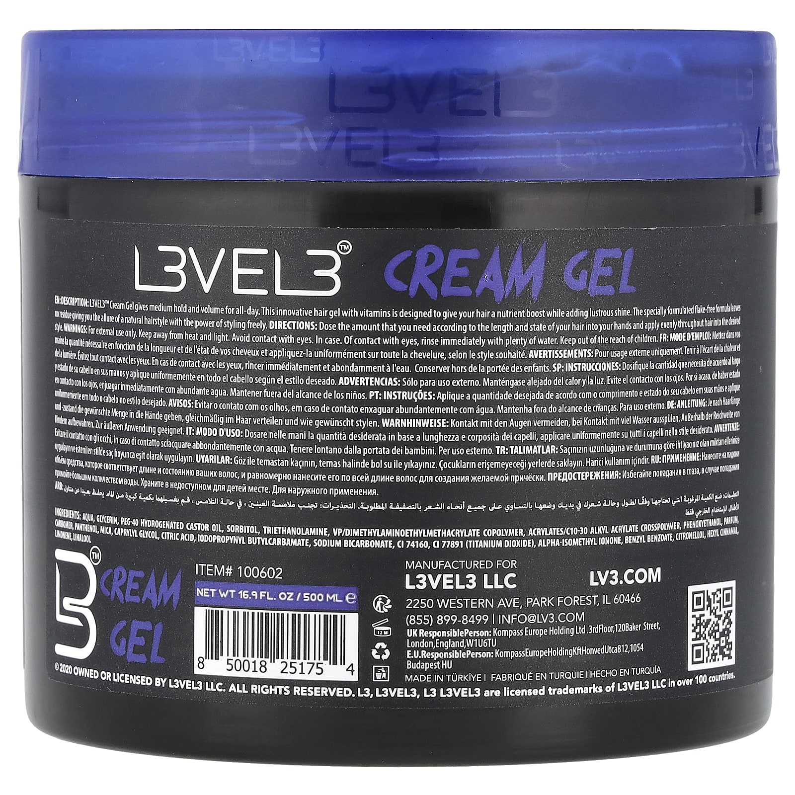 Крем-гель L3VEL3 ™ обеспечивает среднюю фиксацию и объем на весь день. Этот инновационный гель для волос с витаминами насыщает волосы питательными веществами и придает им блестящий блеск. Специально разработанная формула без перхоти не оставляет следов, обеспечивая естественную прическу с возможностью свободного укладки.