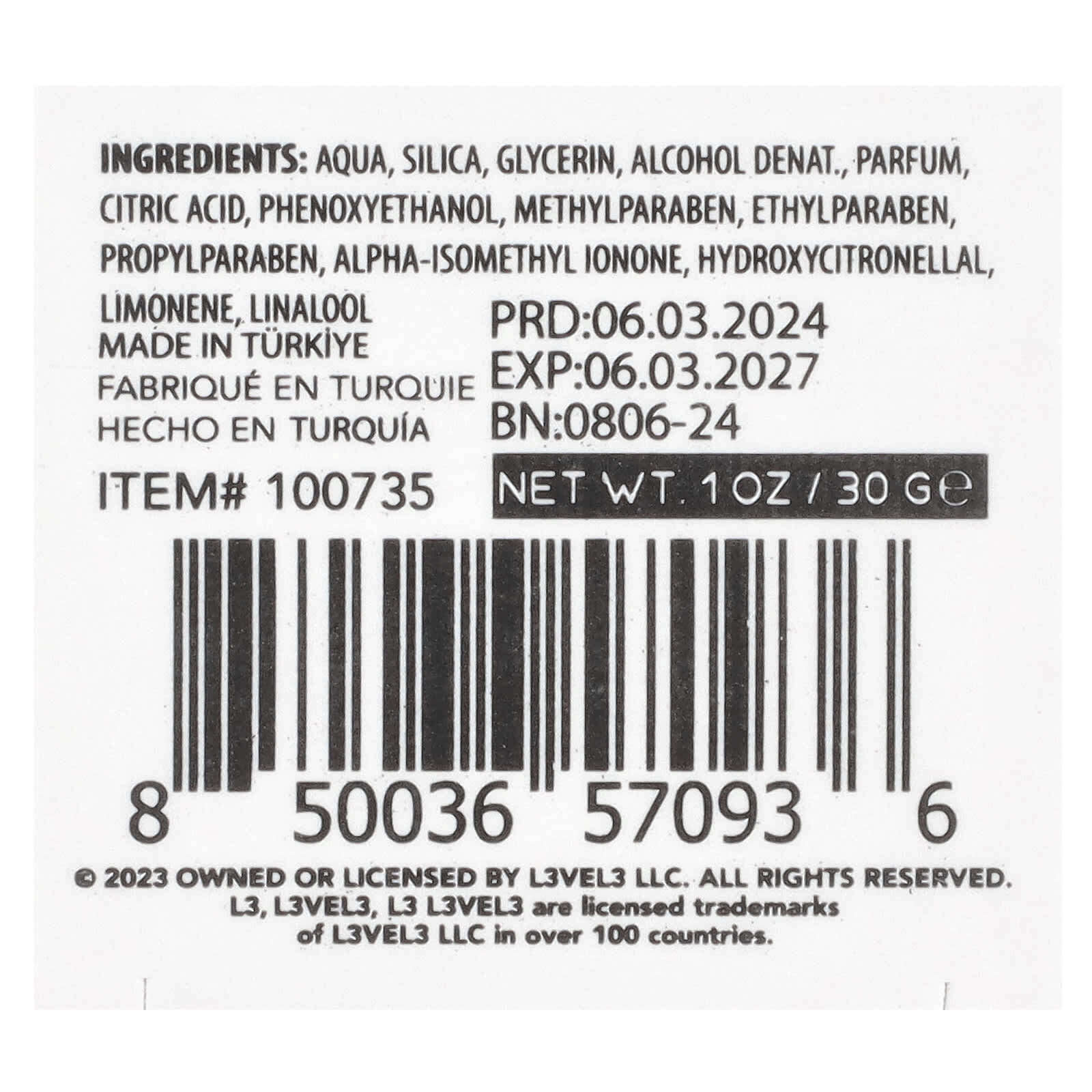Вода, диоксид кремния, глицерин, денатурированный спирт, парфюмерная композиция (отдушка), феноксиэтанол, лимонная кислота, метилпарабен, этилпарабена, пропилпарабен, лимонена, линалоол, альфа-изометилионон, гидроксицитронеллаль.