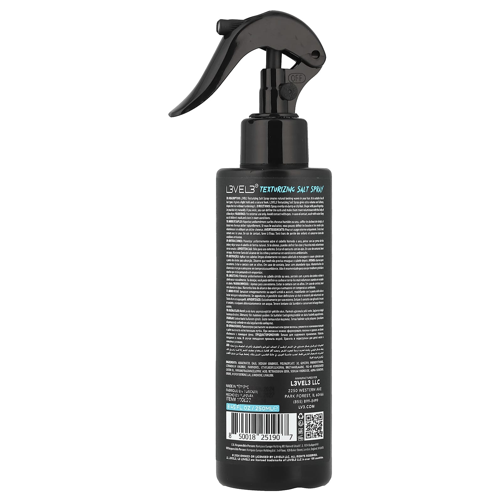 Текстурирующий солевой спрей L3VEL3 создает естественные волны на ваших волосах. Подходит для всех типов волос. Обеспечивает легкую фиксацию и естественный вид. Текстурирующий солевой спрей L3VEL3 придает волосам дополнительный объем и пышность, придает им форму, не делая их жесткими.