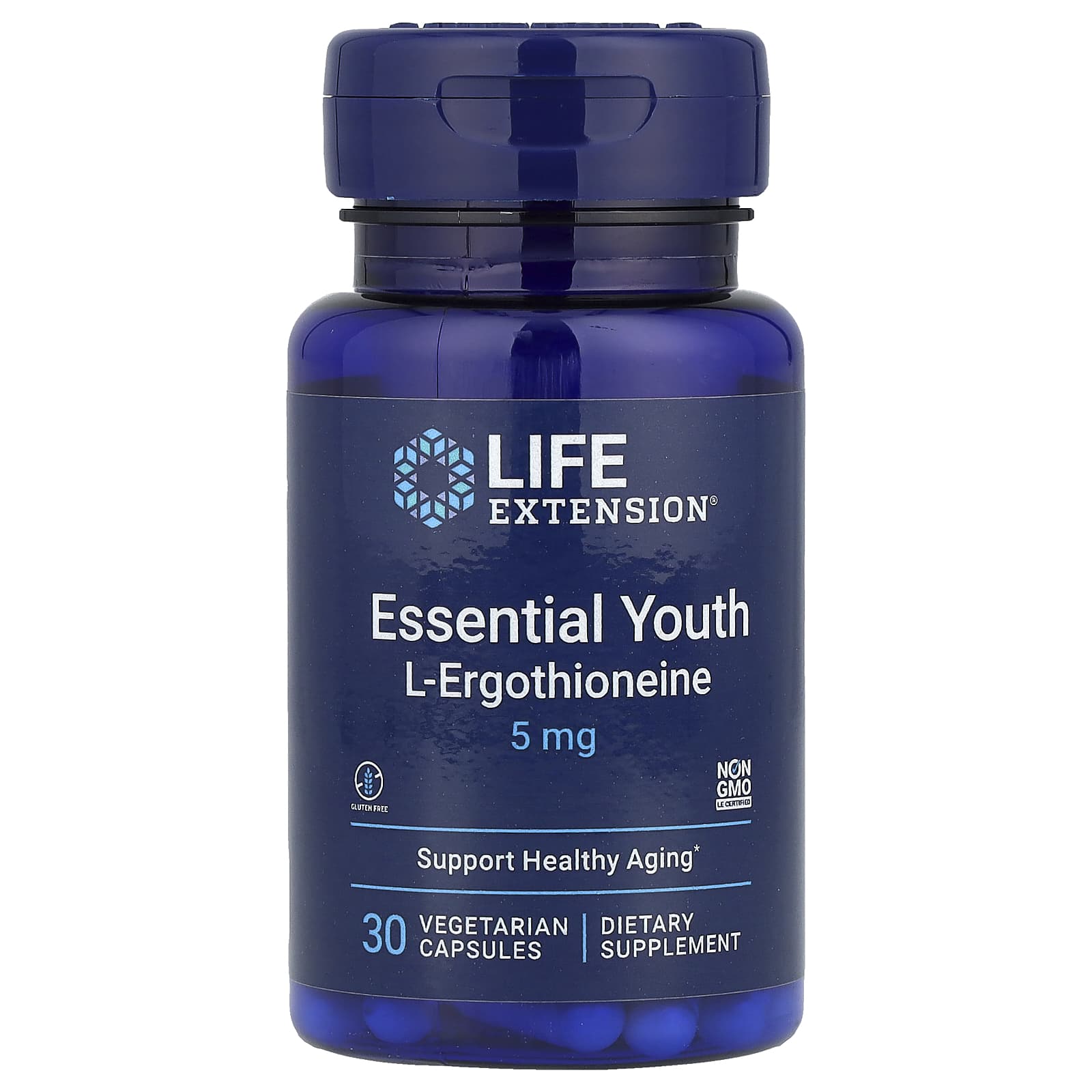 Оставайтесь молодыми с L-эрготионеином Essential Youth. Наша инновационная формула содержит 5 мг эрготионеина, аминокислоты, которая в высоких концентрациях содержится в некоторых грибах и обладает мощными защитными свойствами.
