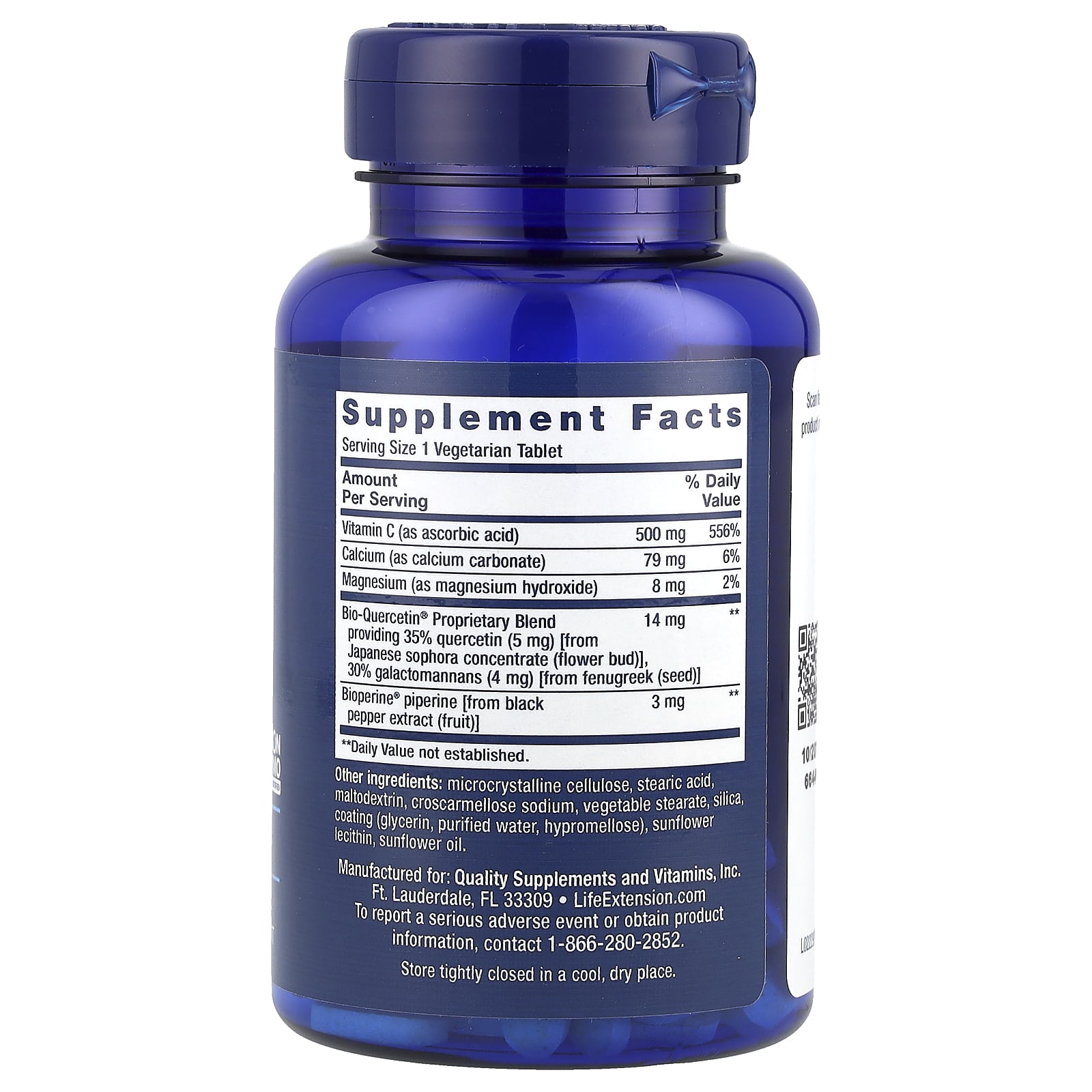 | Запатентованная смесь Bio-Quercetin® содержит 35% кверцетина (5 мг) [из концентрата японской софоры (бутон цветка)], 30% галактоманнанов (4 мг) [из семян пажитника] | 14 мг | ** |