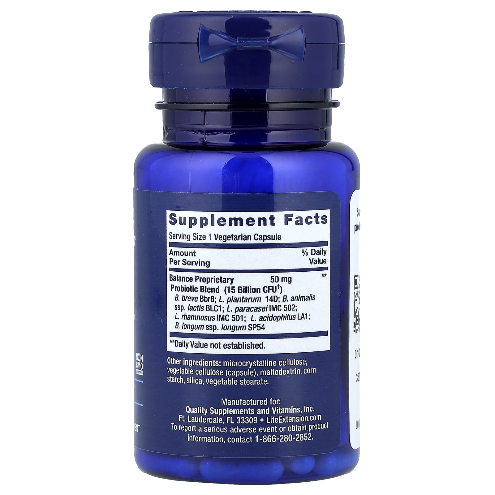 | Сбалансированная запатентованная смесь пробиотиков (15 млрд КОЕ † ) B.breve Bbr8;L. plantarum 14D;B. Animalis подвид лактис BLC1;L. paracasei IMC 502;L. rhamnosus IMC 501;ацидофильные лактобактерии (L. acidophilus) LA1;подвид B. longum longum SP54 | 50 мг | ** |