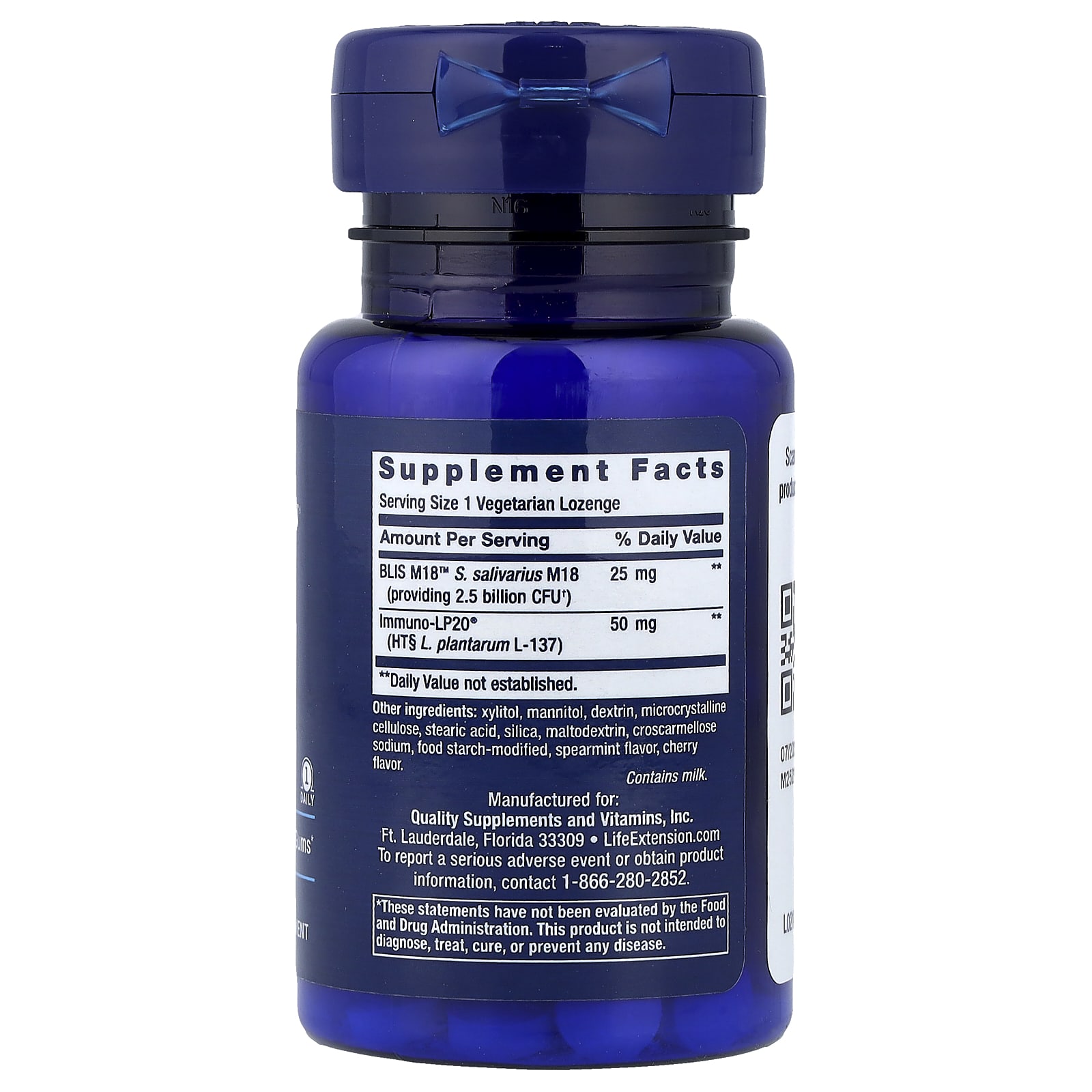 | S. salivarius M18, штамм BLIS M18™ (2,5 млрд КОЕ†) | 25 мг | ** |