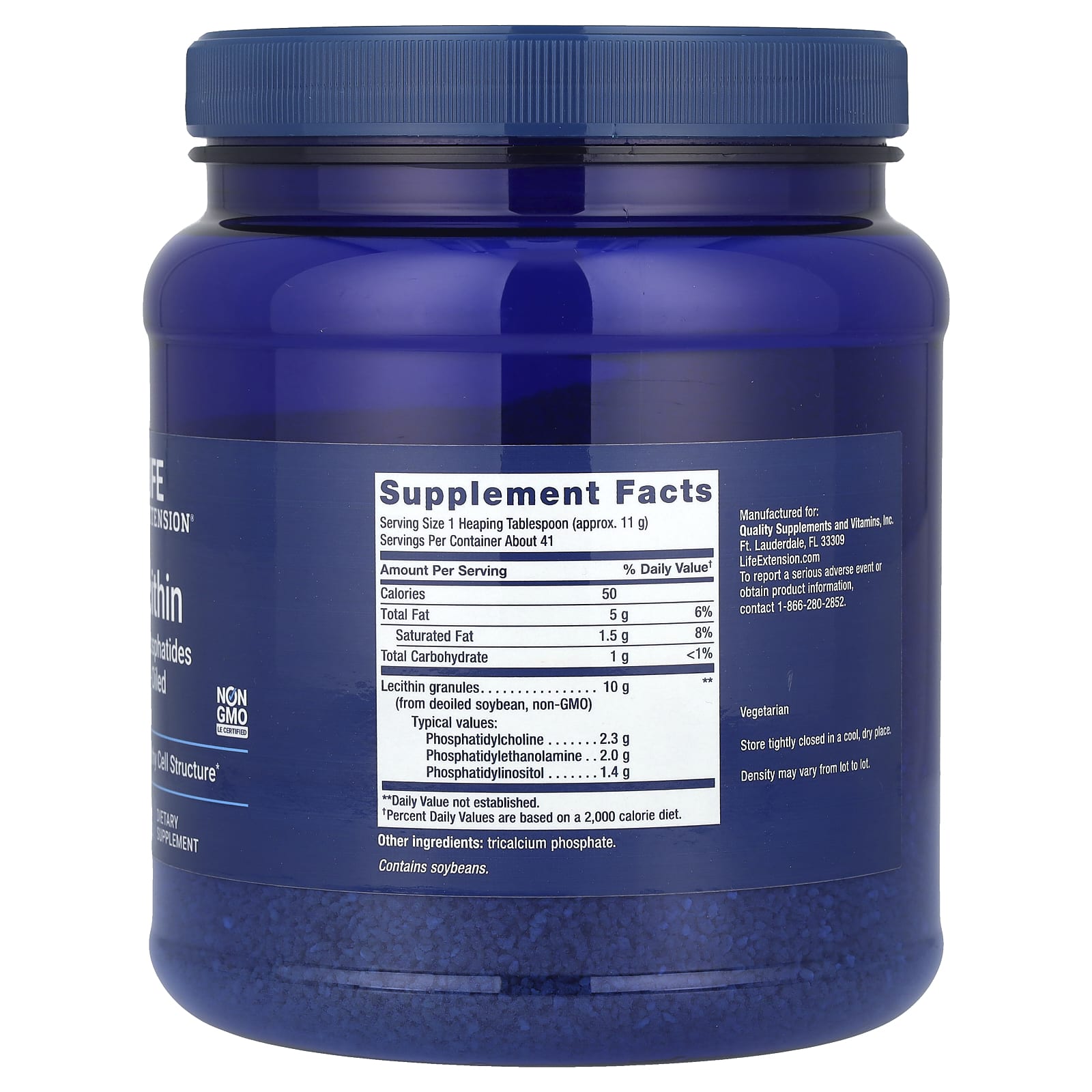 | Гранулы из лецитина (из обезжиренной сои, без ГМО) Типичные значения: фосфатидилхолин фосфатидилэтаноламин фосфатидилинозитол | 10 г 2,3 г 2,0 г 1,4 г | ** |