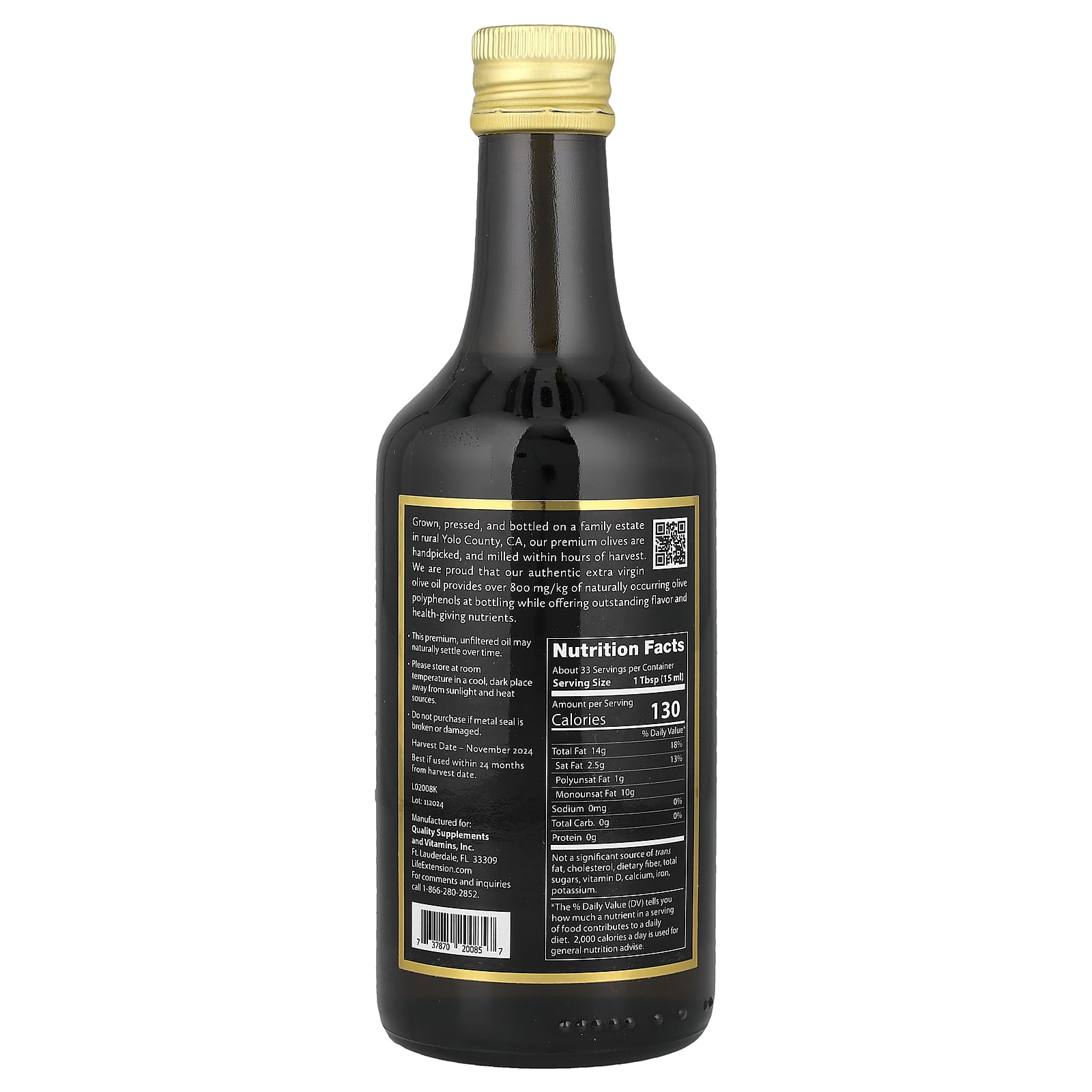Наши оливки премиального качества выращивают, отжимают и разливают по бутылкам на семейном поместье в округе Йоло, штат Калифорния (США), а затем собирают вручную и измельчают в течение нескольких часов после сбора. Мы гордимся тем, что наше подлинное нерафинированное оливковое масло высшего качества содержит более 800 мг/кг натуральных полифенолов оливы при разливе, обладая выдающимся вкусом и полезными питательными веществами.