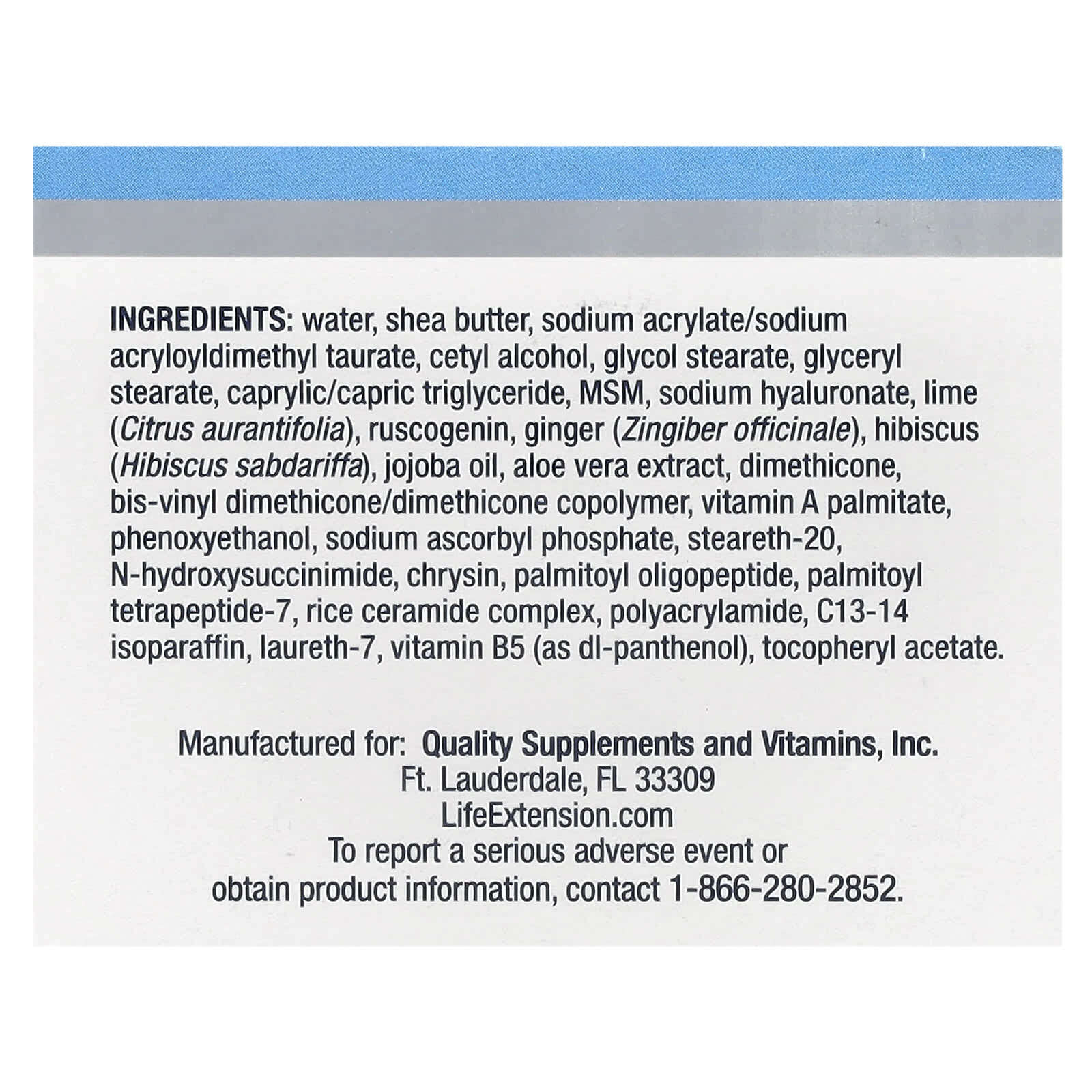 Вода, масло ши, акрилат натрия / акрилоилдиметил таурат натрия, цетиловый спирт, гликоль стеарат, глицерил стеарат, каприловый / каприновый триглицерид, МСМ, гиалуронат натрия, лайм (Citrus aurantifolia), рускогенин, имбирь (Zingiber officinale), гибискус (Hibiscus sabdariffa), масло жожоба, экстракт алоэ вера, диметикон, бис-винил диметикон / диметикон сополимер, пальмитат витамина А, феноксиэтанол, аскорбил фосфат натрия, стеарет-20, N-гидроксисукцинимид, хризин, пальмитоил олигопептид, пальмитоил тетрапептид-7, комплекс керамидов риса, полиакриламид, C13-14 изопарафин, лаурет-7, витамин B5 (в виде dl-пантенола), токоферилацетат.