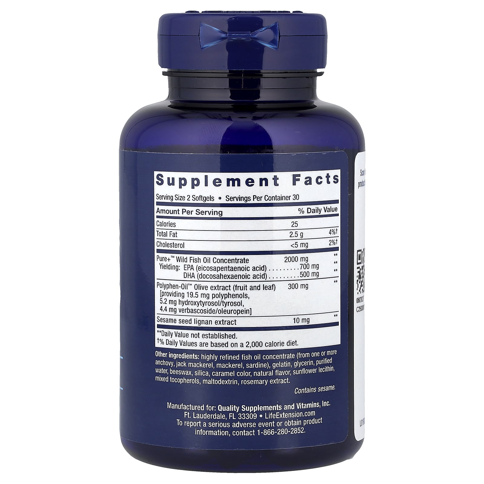Наша добавка Super Omega-3 с ЭПК и ДГК производится из рыбьего жира, сертифицированного IFOS™, который содержит жирные кислоты ЭПК и ДГК для укрепления здоровья сердца, мозга и других органов. Наша добавка Super Omega-3 дополнена полифенолами из экстракта оливы и лигнанами кунжута.