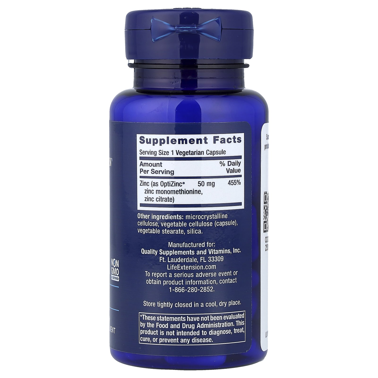 | Цинк (в виде цитрата цинка, монометионина цинка OptiZinc®) | 50 мг | 455% |