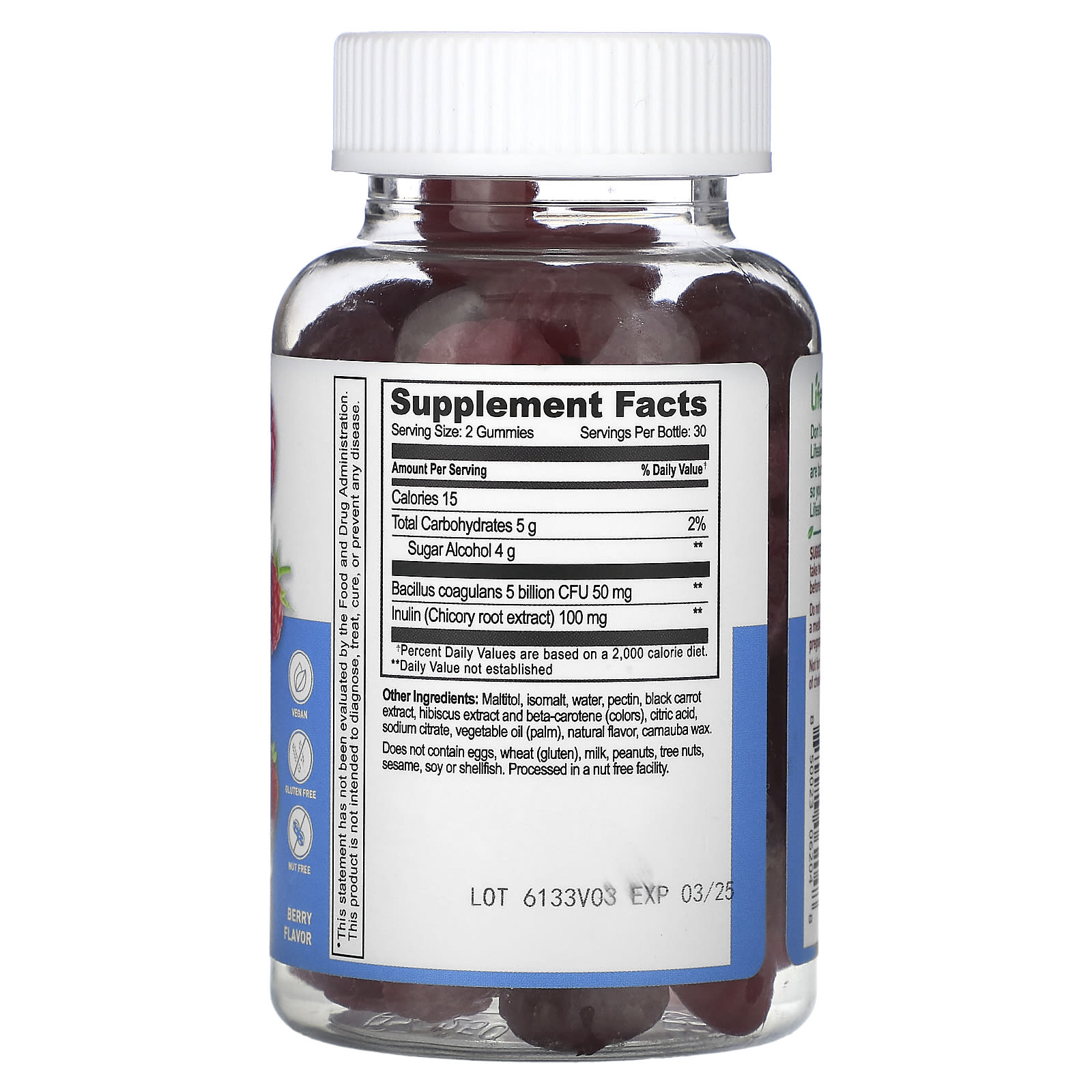 Мальтит, изомальт, вода, пектин, экстракт черной моркови, экстракт гибискуса и бета-каротин (красители), лимонная кислота, цитрат натрия, растительное масло (пальмовое), натуральный ароматизатор, камаубский воск.
