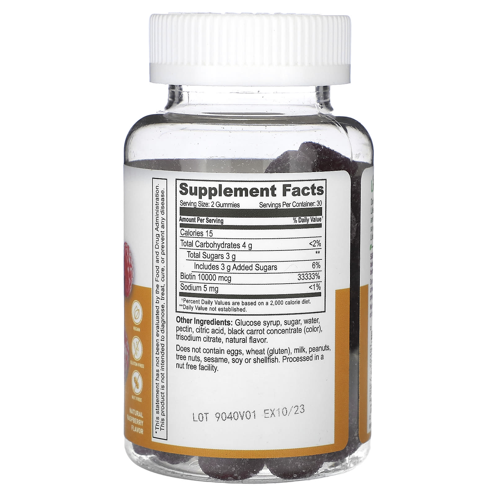 Каждая порция этих жевательных таблеток с восхитительным малиновым вкусом содержит 10 000 мкг биотина, водорастворимого витамина группы B, который, как показывают исследования, важен для поддержания здоровья волос, кожи и ногтей.