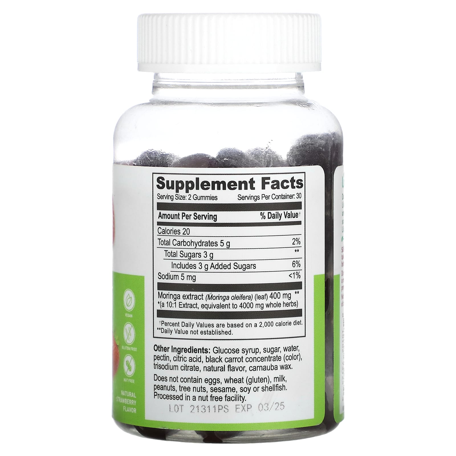 | Экстракт моринги (Moringa oleifera) (лист) (экстракт 10: 1, эквивалент 4000 мг цельных трав) | 400 мг | ** |