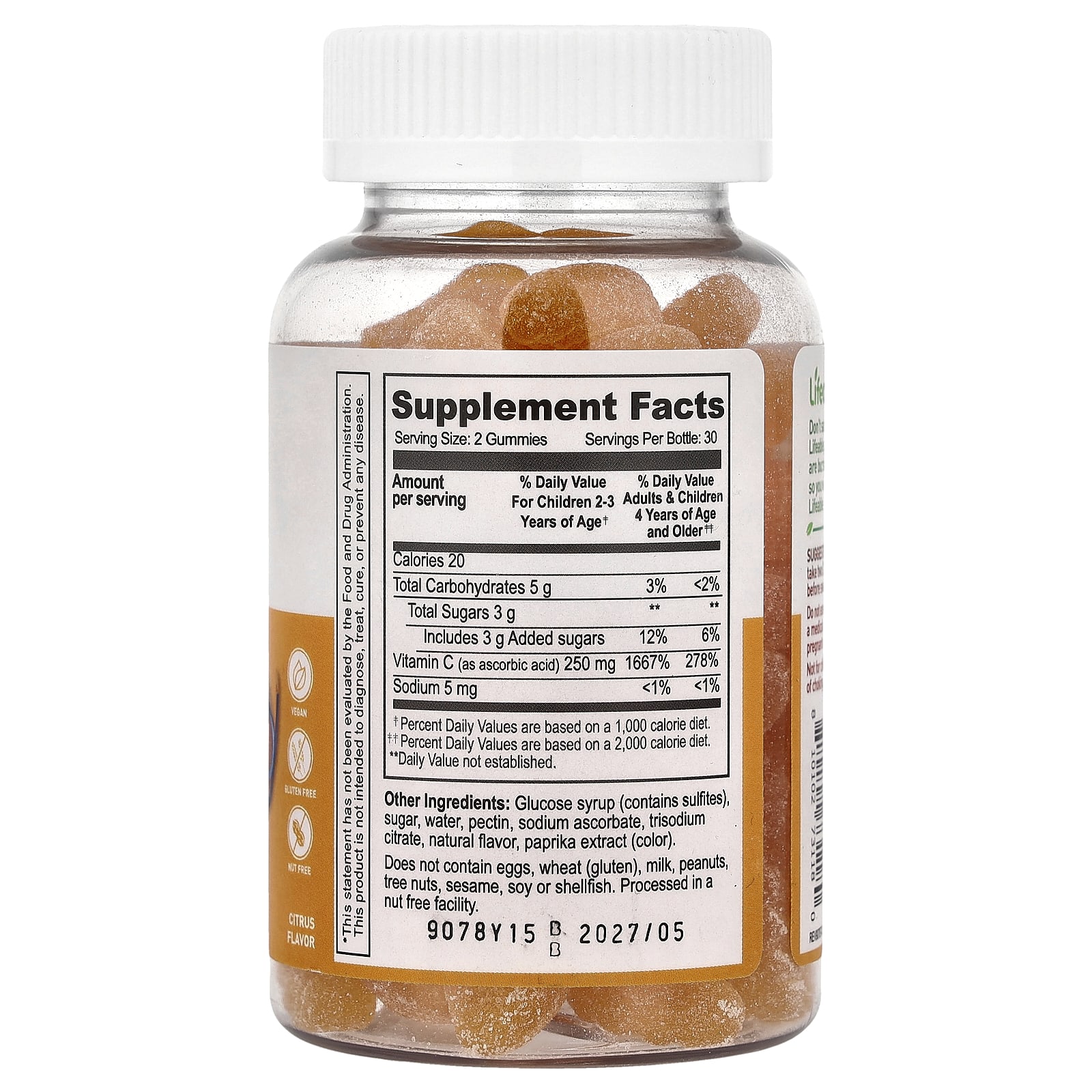 | Витамин С (в виде аскорбиновой кислоты) | 250 мг | 1667% | 278% |