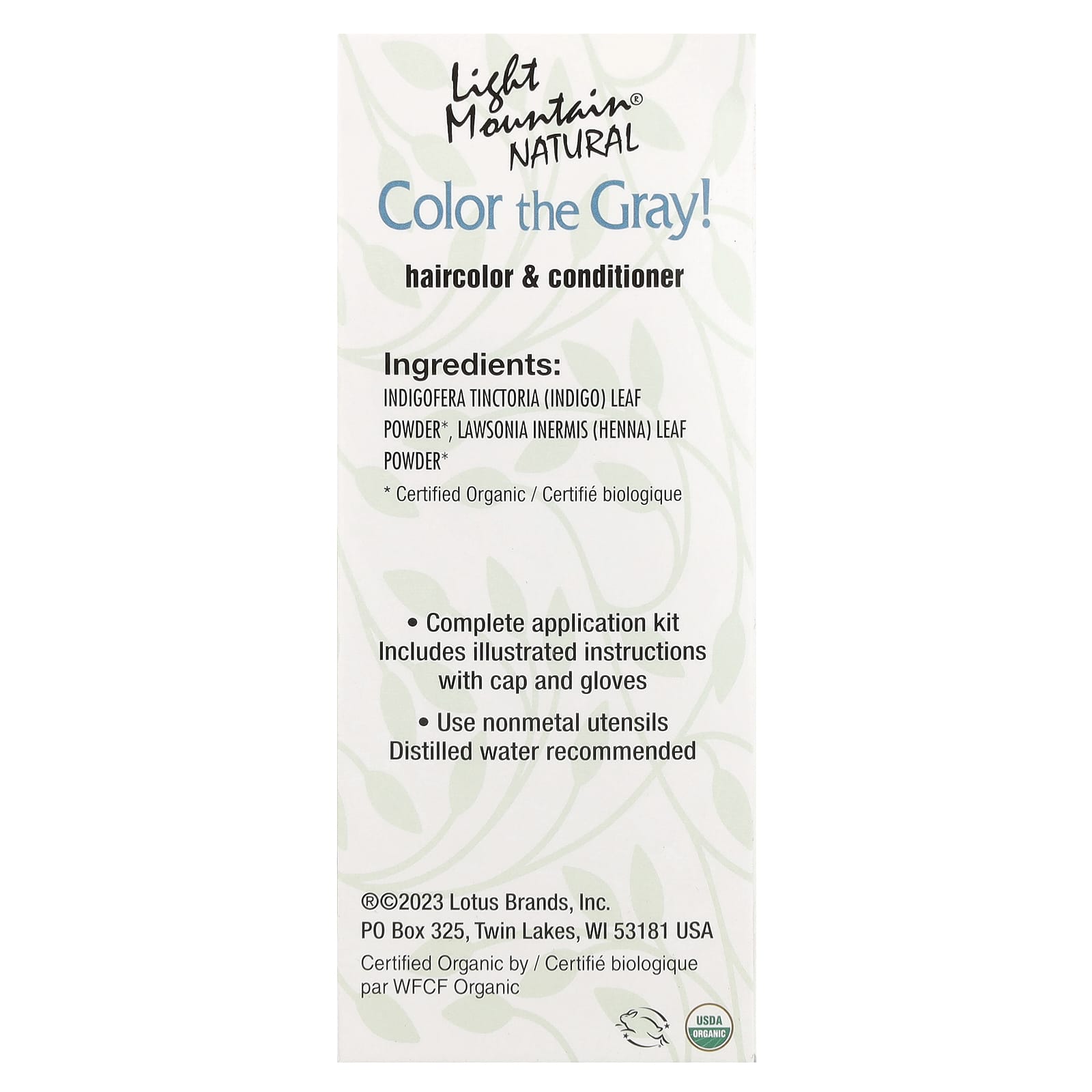 Light Mountain® Natural Color the Grey! представляет собой двухэтапный процесс, который обеспечивает лучшее покрытие для более чем 10% белых, седых, блондов или мелированных волос. Натуральные растительные компоненты защищают и питают волосы, восстанавливают их тело и блеск, мягко придают им цвет. В наших формулах используется порошок с более мелкими ячейками. Приготовленная краска для волос будет иметь более кремовую консистенцию, что обеспечит более гладкое нанесение, легкое смывание и лучшее окрашивание.