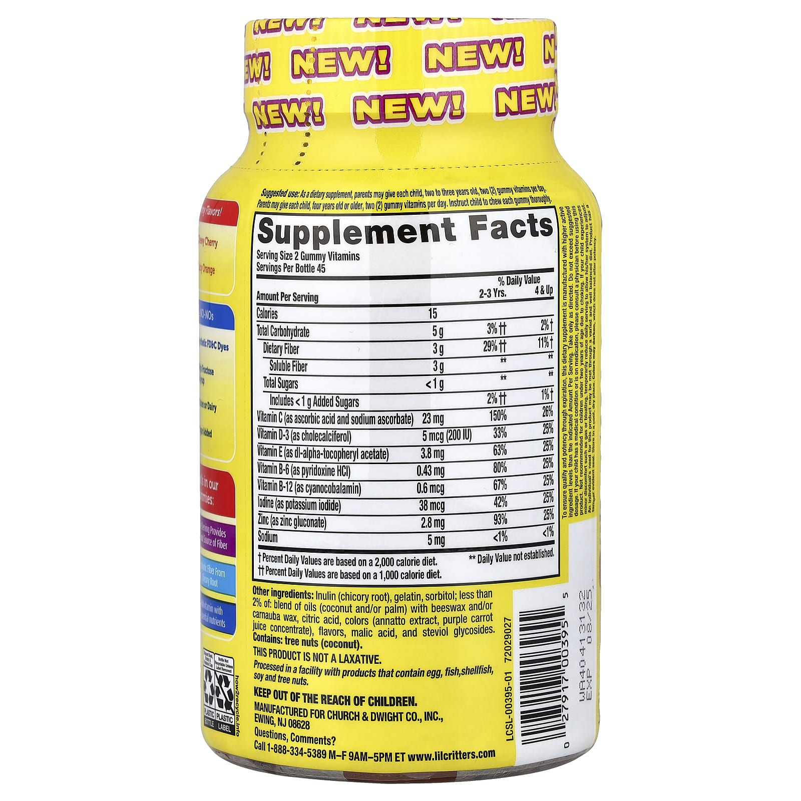 Чтобы обеспечить качество и эффективность в течение срока годности, эта пищевая добавка производится с более высоким уровнем активного ингредиента, чем указанное количество на порцию. Применять только согласно инструкции. Не следует превышать рекомендуемую дозировку. Если у вашего ребенка есть заболевания или он принимает лекарства, проконсультируйтесь с врачом перед использованием этого продукта. Продукт не рекомендуется для детей младше 2 лет, поскольку существует риск того, что они могут подавиться. Если ваш ребенок испытывает незначительный дискомфорт, например газы или вздутие живота, временно уменьшите ежедневную порцию, чтобы его организм мог приспособиться. Потребность человека в этом продукте может быть удовлетворена за счет разнообразного и хорошо сбалансированного рациона. Продукт имеет защитную пленку. Хранить в сухом и прохладном месте. Цвета могут потемнеть, что не влияет на эффективность.