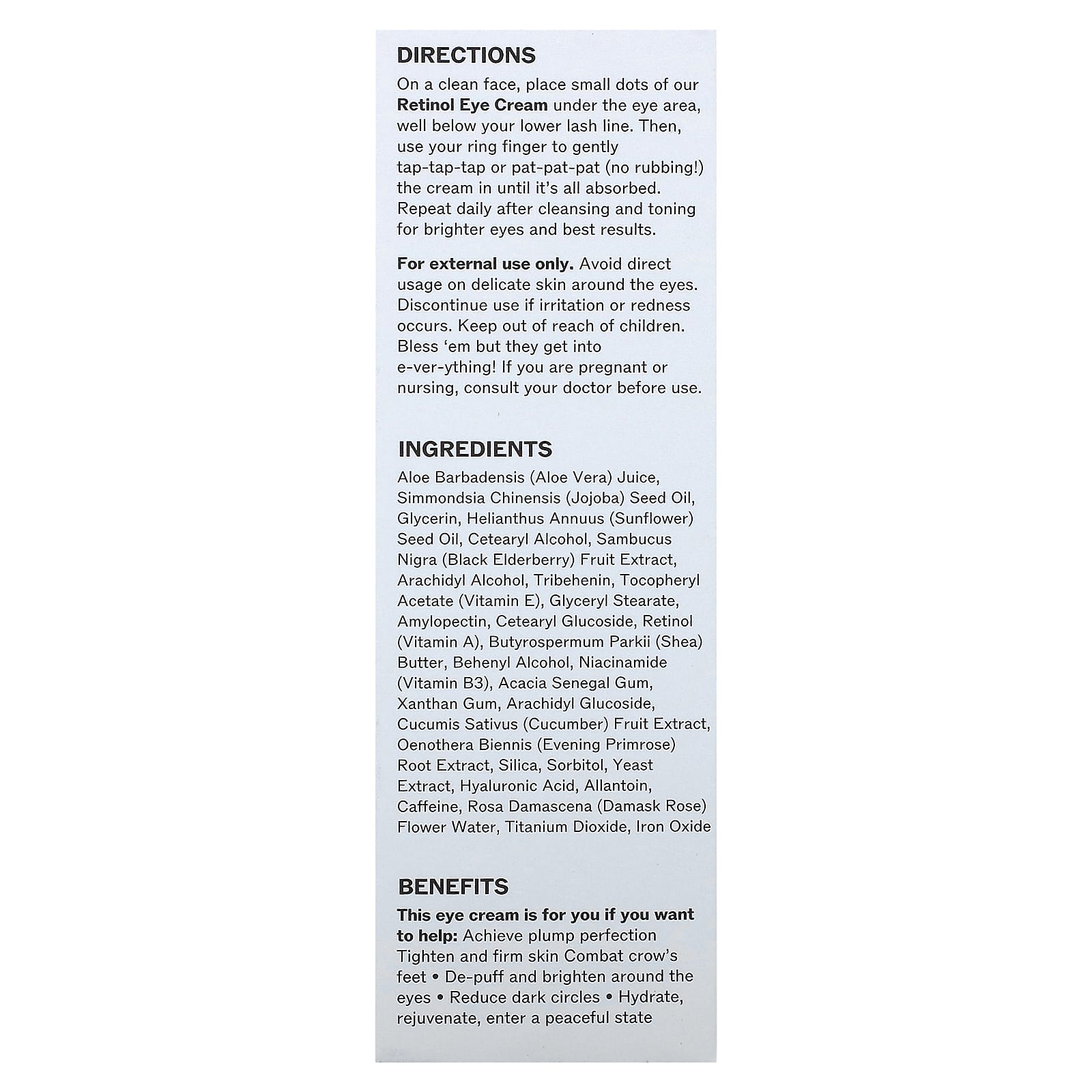 На чистом лице нанесите небольшие точки крема для век с ретинолом под область вокруг глаз, значительно ниже нижней линии роста ресниц. Затем безымянным пальцем аккуратно нанесите крем на кожу или похлопайте (не втирайте!), Пока он полностью не впитается. Повторяйте процедуру ежедневно после очищения и тонизирования для более ярких глаз и наилучших результатов.