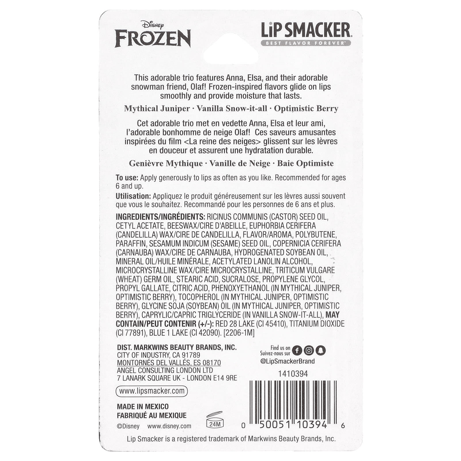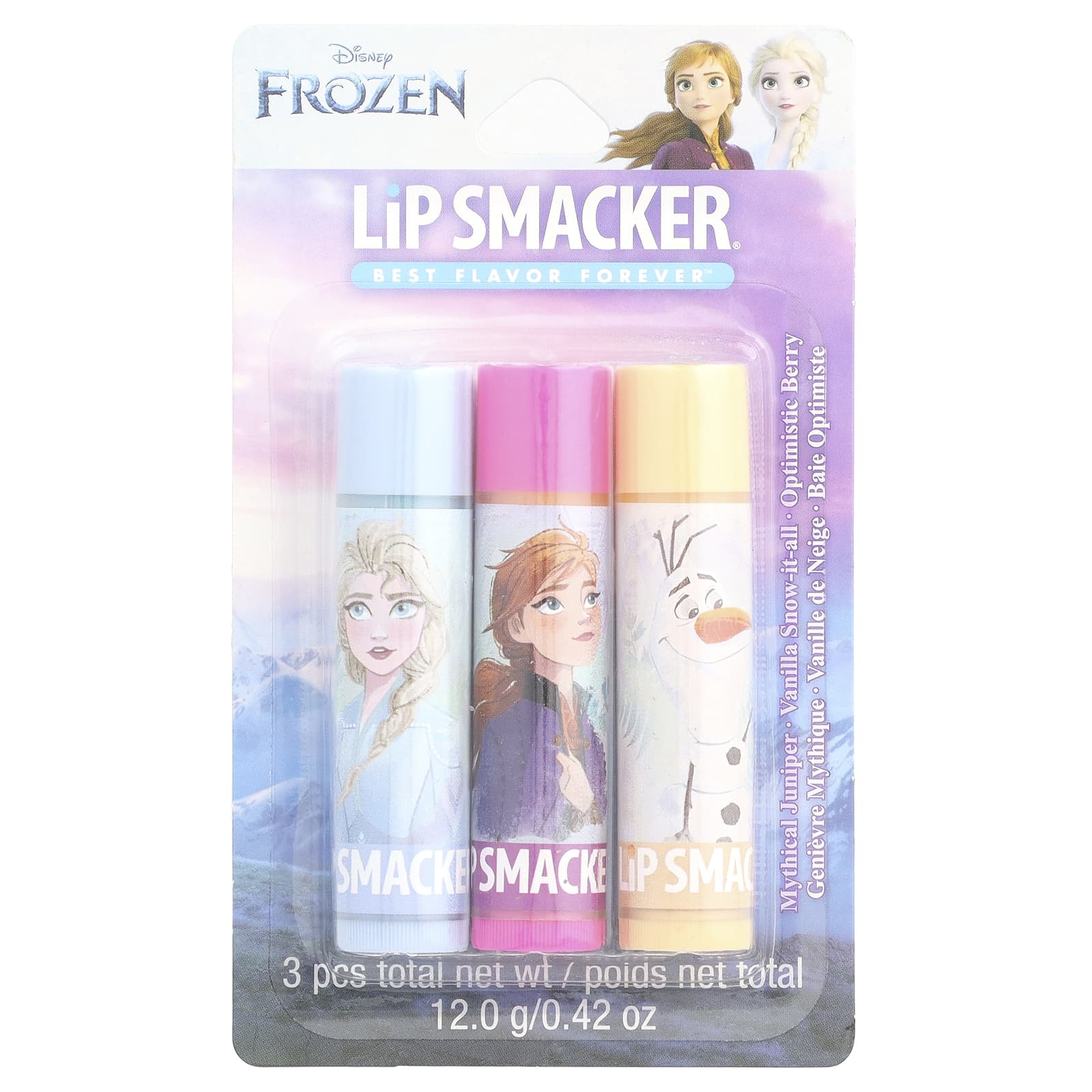 В это восхитительное трио входят Анна, Elsa и их восхитительный друг-снега Олаф! Вдохновленные замороженным вкусом ароматы легко скольжения на губах и обеспечивают увлажнение на долгое время.