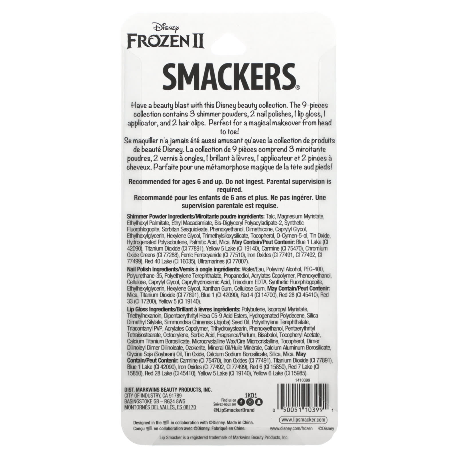 Состав лака для ногтей: Вода, поливиниловый спирт, ПЭГ-400, полиуретан-35, полиэтилен терефталат, пропандиол, сополимер акрилатов, феноксиэтанол, целлюлоза, каприлилгликоль, каприлгидроксаминовая кислота, тринатриевая ЭДТК, синтетический фторфлогопит, этилгексилглицерин, гексиленгликоль, ксантановая камедь, целлюлозная камедь. Может содержать слюду, диоксид титана (CI 77891), краситель синий 1 (CI 42090), краситель красный 4 (CI 14700), краситель красный 28 (CI 45410), краситель красный 33 (CI 17200), краситель желтый 5 (CI 19140).