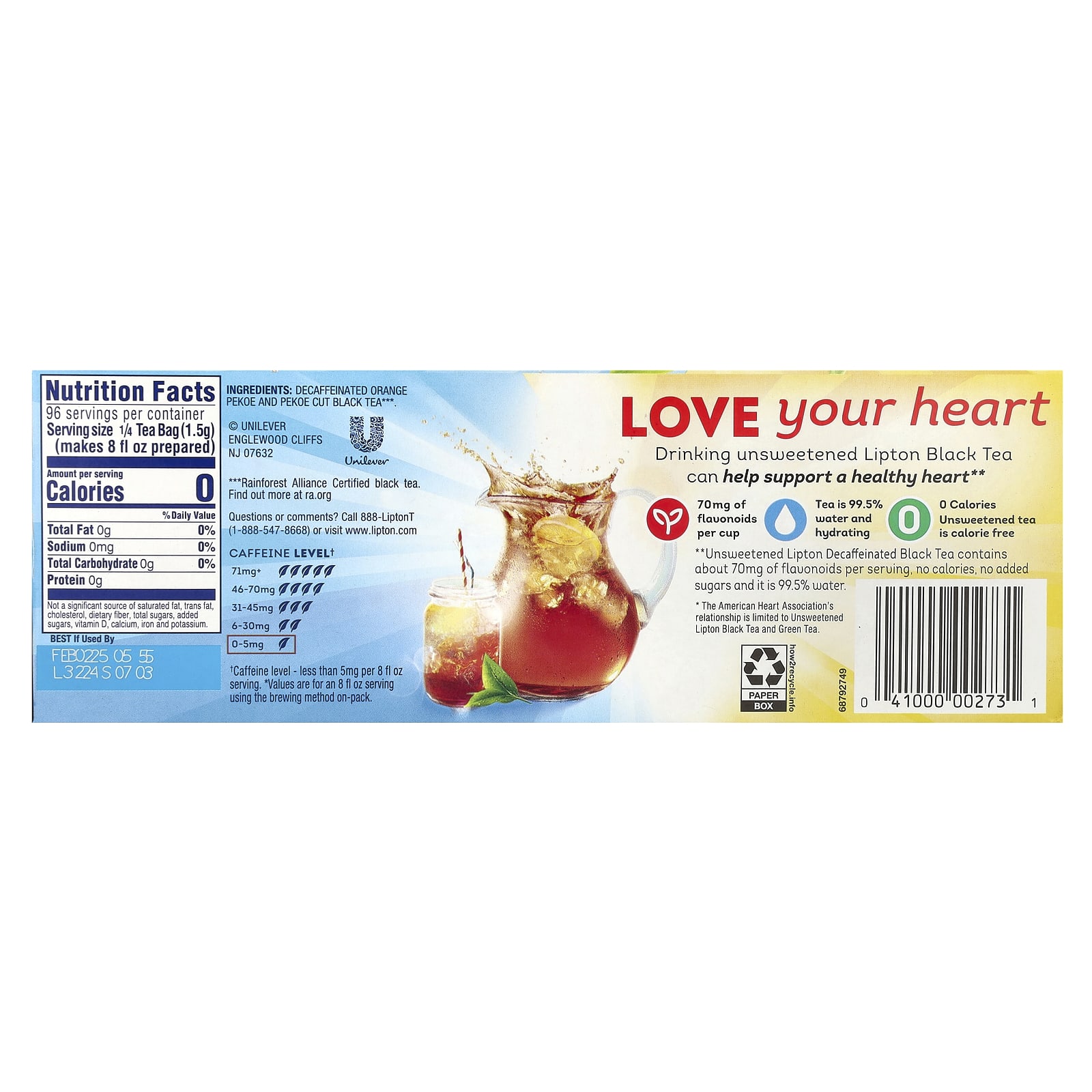 ** Несладкий черный чай Lipton без кофеина и 99,5% воды содержит около 70 мг флавоноидов на порцию, не содержит калорий и добавленного сахара.