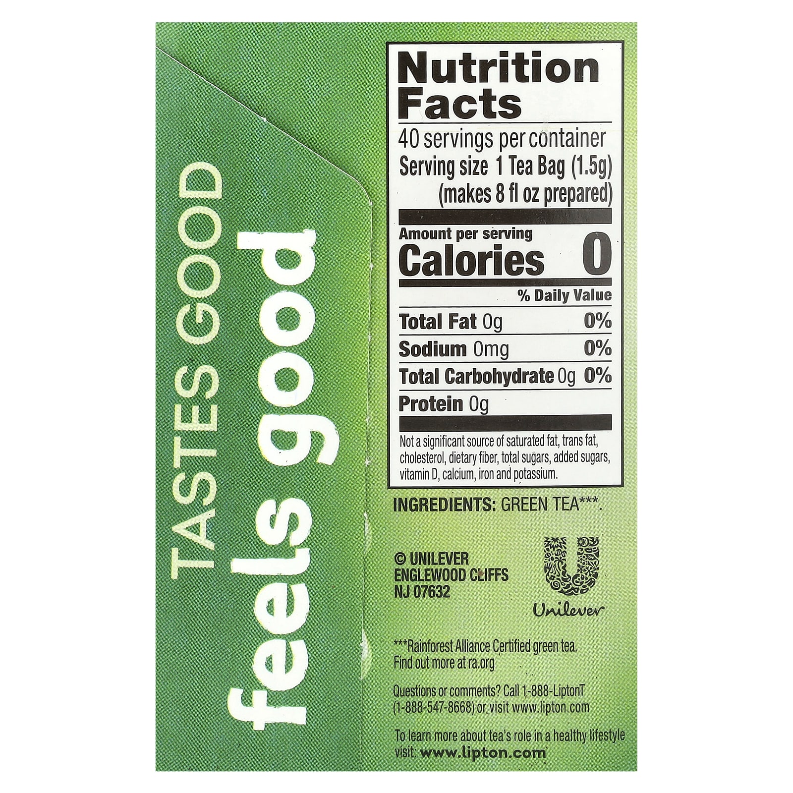 ** Несладкий зеленый чай Lipton содержит около 150 мг флавоноидов на порцию, не содержит калорий, добавленного сахара и на 99,5% состоит из воды.