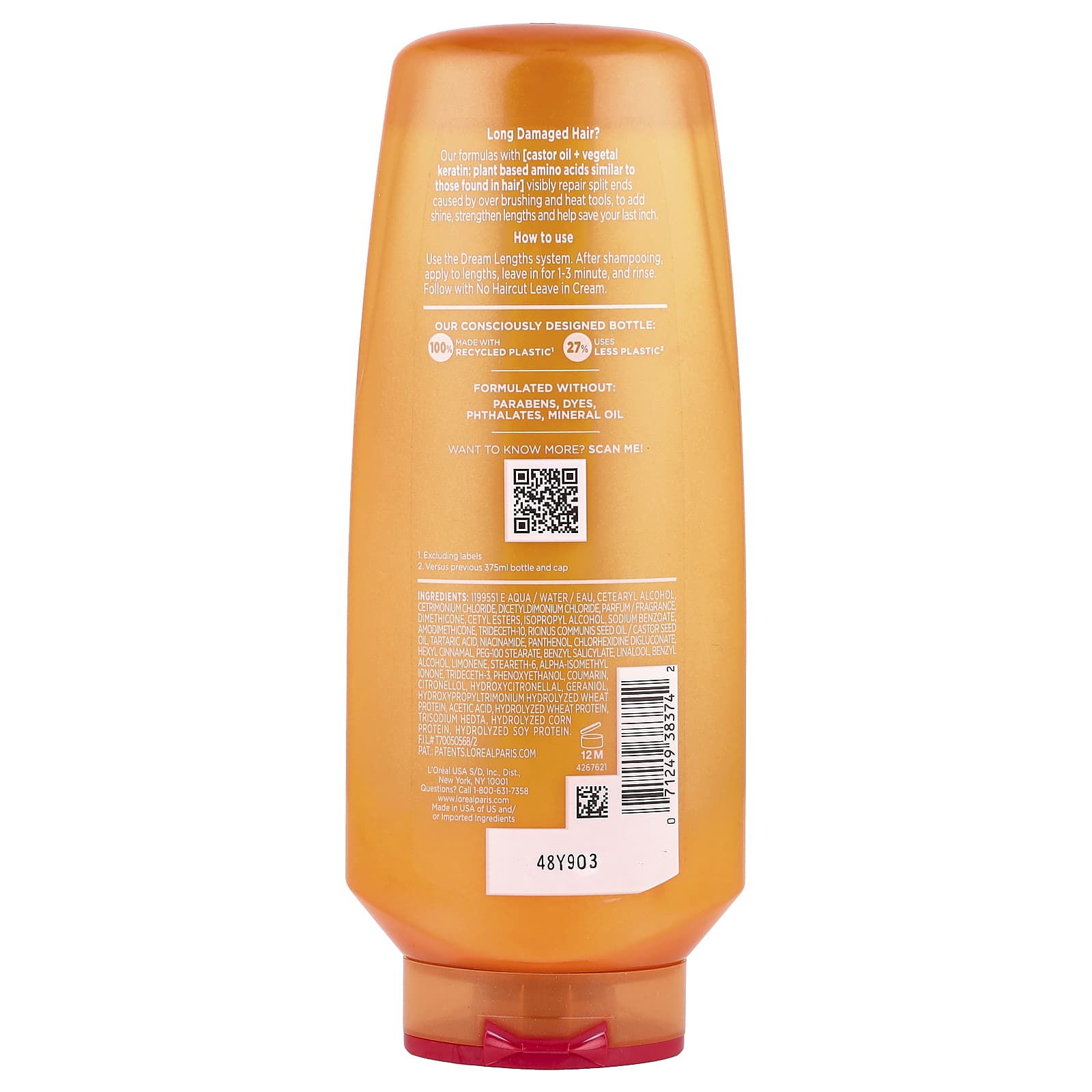 Наши формулы с [касторовым маслом + растительным кератином: растительными аминокислотами, похожими на те, которые содержатся в волосах] заметно восстанавливают секущиеся кончики волос, возникшие из-за чрезмерного расчесывания и нагревания инструментов, придают блеск, укрепляют волосы и помогают сохранить волосы.