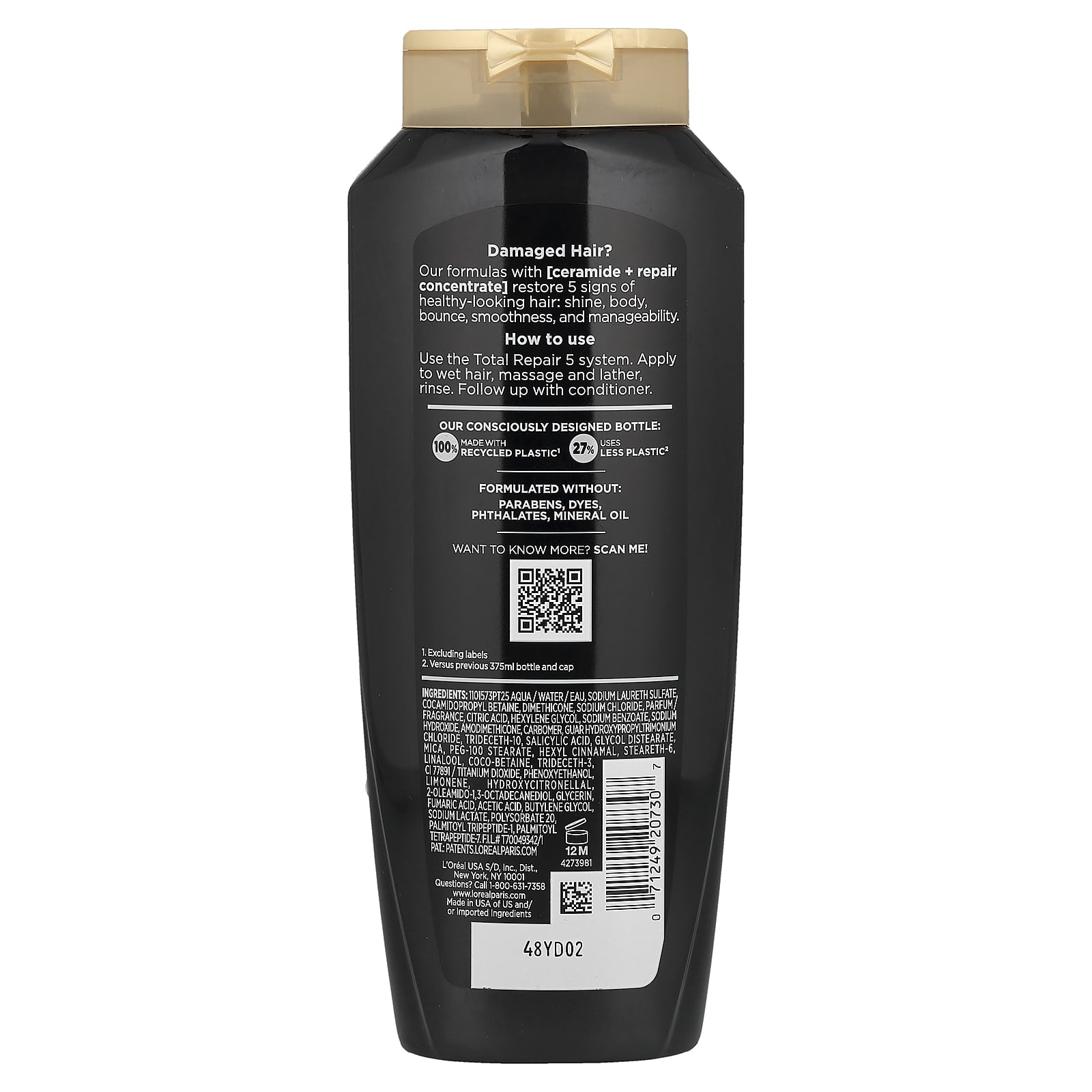 Вода / вода / вода, лауретсульфат натрия кокамидопропилбетаин, диметикон, хлорид натрия, парфюмерная композиция, лимонная кислота, гексиленгликоль, бензоат натрия, гидроксид натрия, амодиметикон, карбомер, гуар гидроксипропилтримония хлорид, тридецет-10, салициловая кислота, гликоль дистеарат, слюда, ПЭГ-100 стеарат, гексил циннамал, стеарет-6, линалоол, коко-бетаин, тридецет-3, CI 77891 / диоксид титана, феноксиэтанол, лимонен, гидроксицитронеллаль, 2-олеамидо-1,3-октадекандиол, глицерин, фумаровая кислота, уксусная кислота, бутиленгликоль, лактат натрия, полисорбат 20, пальмитоил трипептид-1, пальмитоил тетрапептид-7.