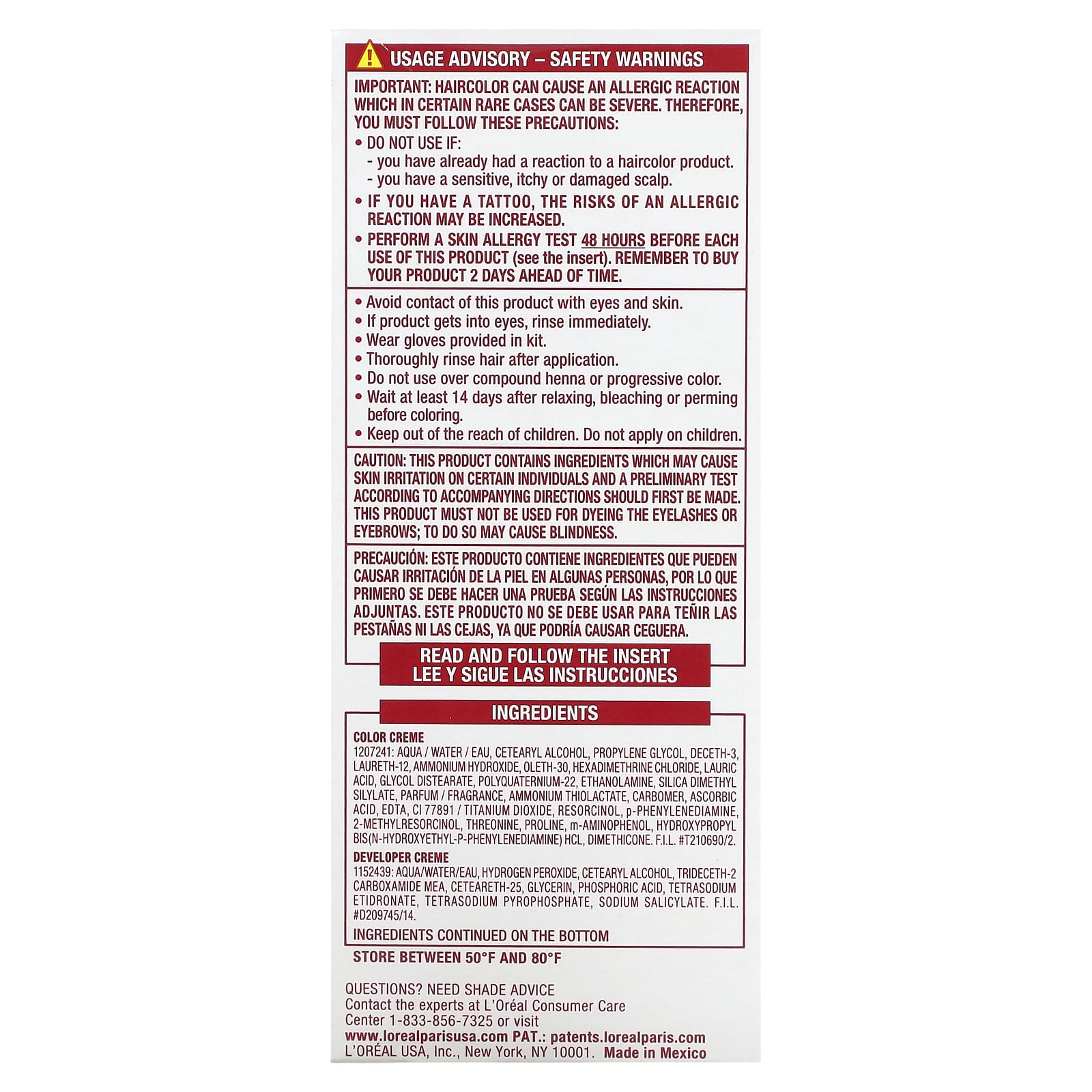 Этот продукт содержит ингредиенты, которые могут вызывать у некоторых людей раздражение кожи. Перед первым применением проверьте наличие аллергической реакции согласно прилагаемой инструкции. Не используйте данный продукт для окрашивания бровей и ресниц, поскольку это может привести к потере зрения.
