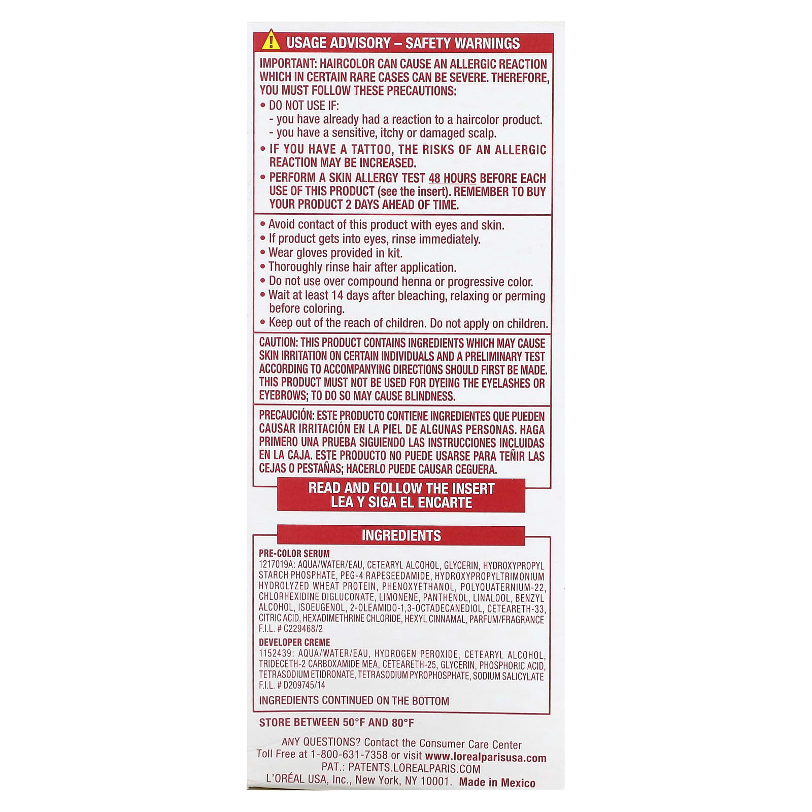 - Выполняйте тест на кожную аллергию за 48 часов до каждого использования этого продукта (см. Вкладыш). Не забудьте приобрести продукт за 2 дня до использования.