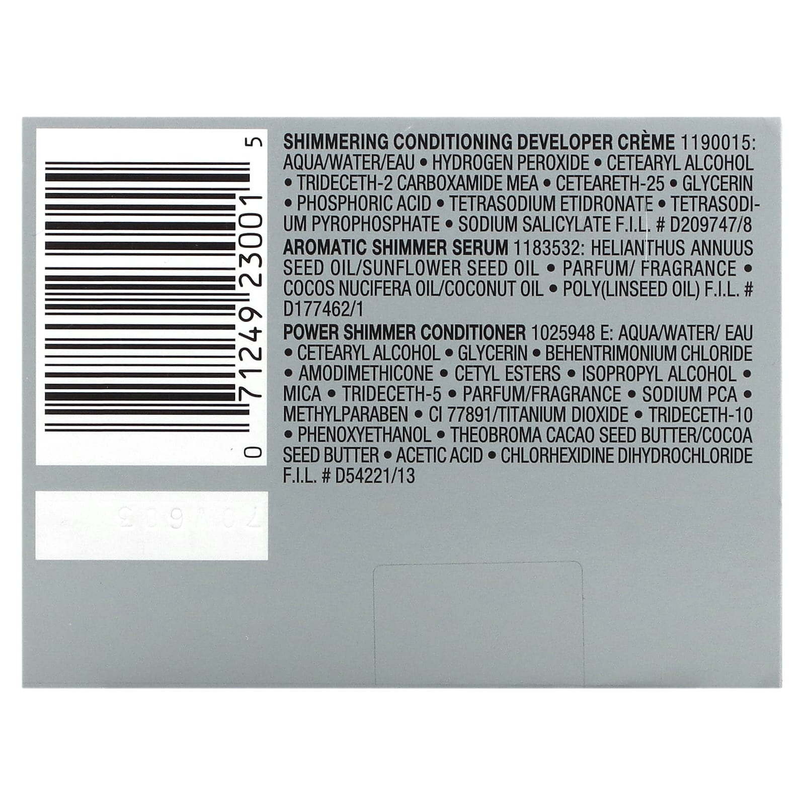 Мерцающий крем-проявитель-кондиционер: Вода (Aqua/eau), перекись водорода, цетеариловый спирт, тридецет-2 карбоксамид МЭА, цетеарет-25, глицерин, фосфорная кислота, тетранатрия этидронат, тетранатрий пирофосфат, салицилат натрия.