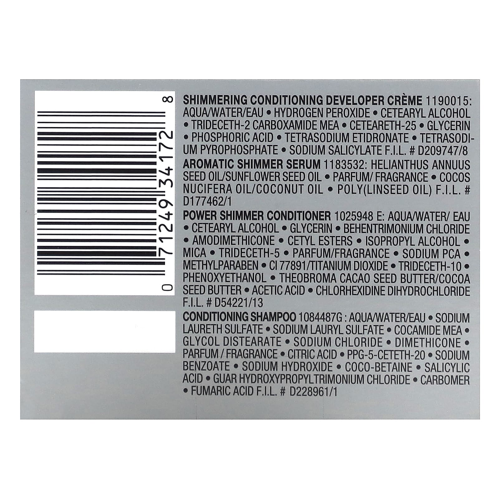 Блестящий кондиционер-проявитель: Вода (Aqua/eau), перекись водорода, цетеариловый спирт тридецет-2 карбоксамид метацентр-25, глицерин фосфорная кислота, тетранатрия этидронат, тетранатрия пирофосфат, салицилат натрия.