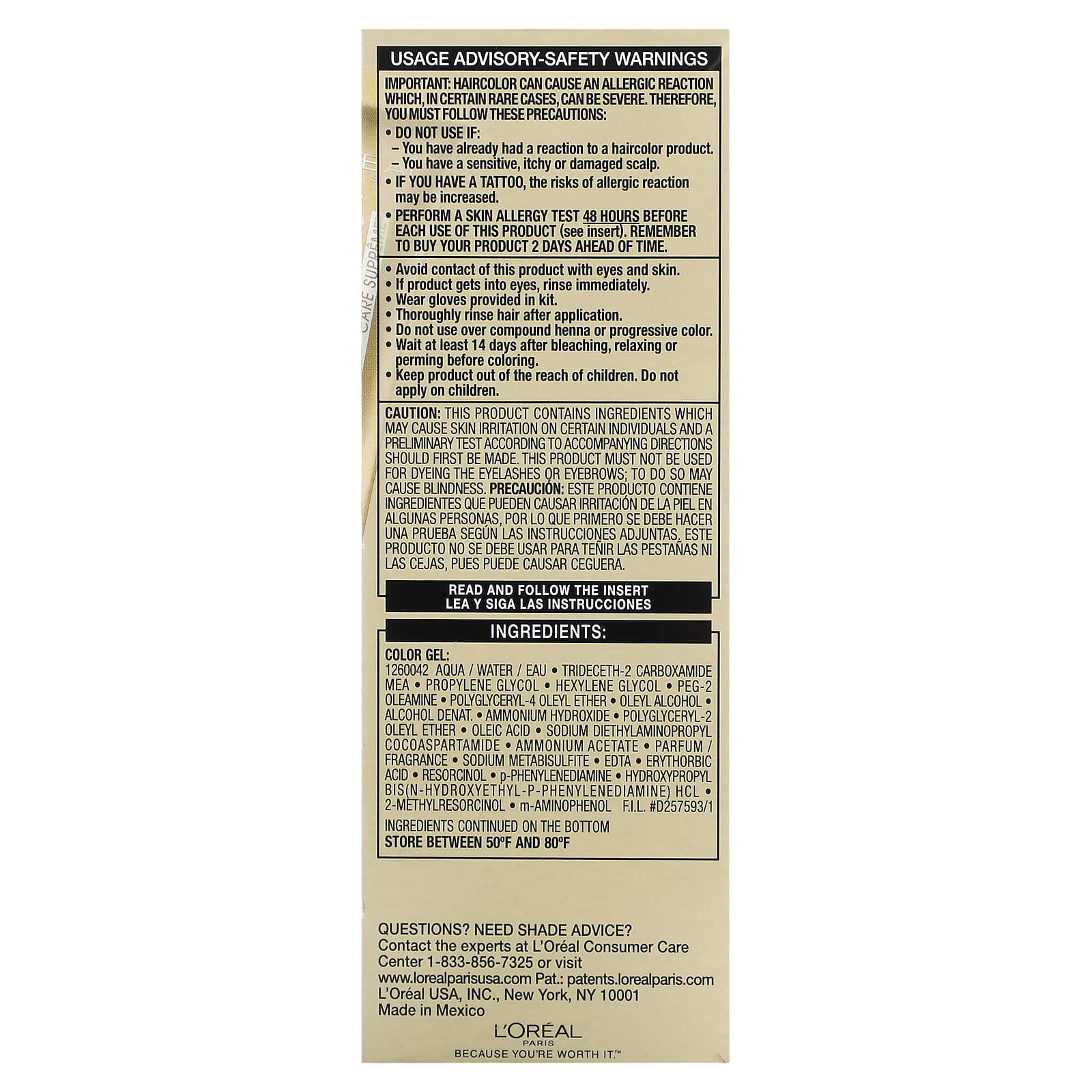 Этот продукт содержит ингредиенты, которые могут вызывать у некоторых людей раздражение кожи. Перед первым применением проверьте наличие аллергической реакции согласно прилагаемой инструкции. Не используйте данный продукт для окрашивания бровей и ресниц, поскольку это может привести к потере зрения.