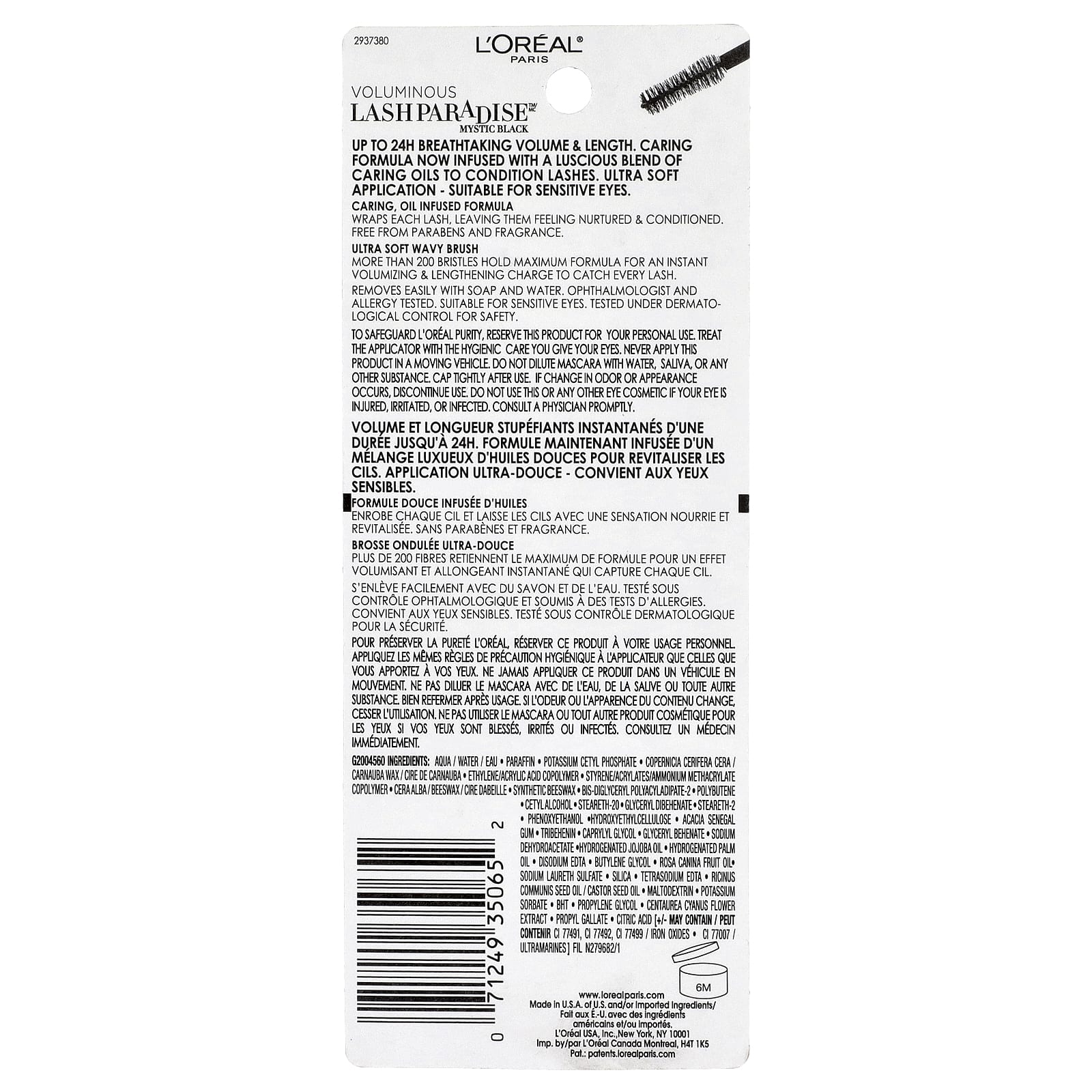 В целях сохранения чистоты L'ORÉAL зарезервируйте этот продукт для личного использования. Соблюдайте гигиену при работе с аппликатором. Никогда не используйте этот продукт в движущемся транспортном средстве. Не разбавляйте тушь водой, слюной или любым другим веществом. Плотно закрывайте крышку после использования. При изменении запаха или внешнего вида следует прекратить использование. Не используйте это или другое косметическое средство для глаз, если ваш глаз поврежден, раздражен или инфицирован. Немедленно обратитесь к врачу.