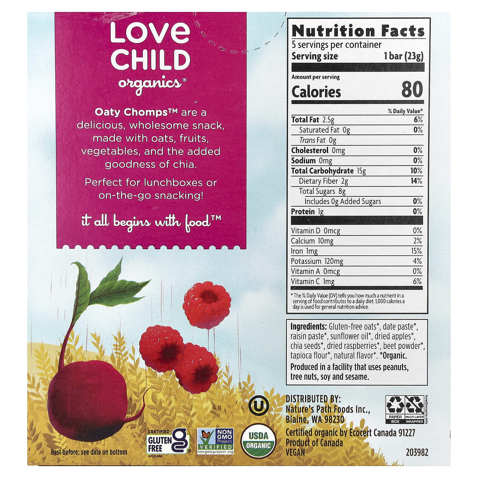 Oaty Chomps™ — это вкусный и полезный снек, приготовленный из овса, фруктов, овощей и семян чиа.