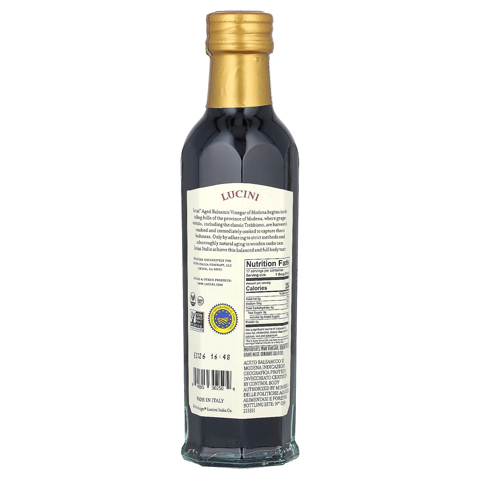 Выдержанный бальзамический уксус из Модены Lucini® берет свое начало на холмистой территории провинции Модена, где сорта винограда, включая классическое требование требубиано, собирают, измельчают и сразу же готовят для сохранения свежести. Только придерживаясь строгих методов и подвергаясь тщательной естественной выдержке в деревянные бочки, Lucini Italia может достичь этого сбалансированного и полного вкуса.