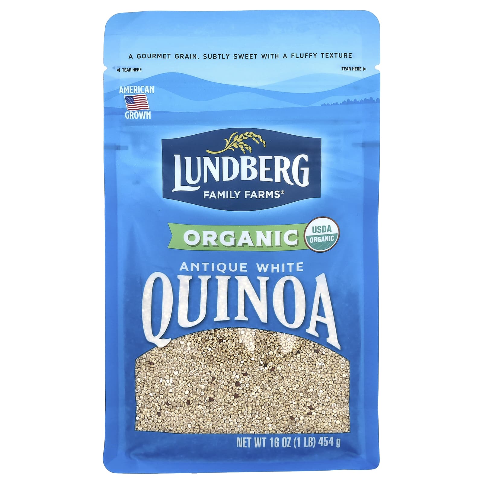 Семейные фермы Lundberg с гордостью представляют выращенную в Америке киноа. Античная белая киноа - это невероятное зерно, которое содержит все девять незаменимых аминокислот, белок и является отличным источником клетчатки в одной порции. По мере созревания античной белой киноа в поле цвет растения приобретает ярко-красный и оранжевый цвета. Растение дает мягкие, не совсем белые семена, слегка сладкие на вкус и готовящиеся к пышной форме за 15 минут. Из него можно приготовить отличное блюдо или гарнир, а также использовать его в качестве основы для создания собственных рецептов.