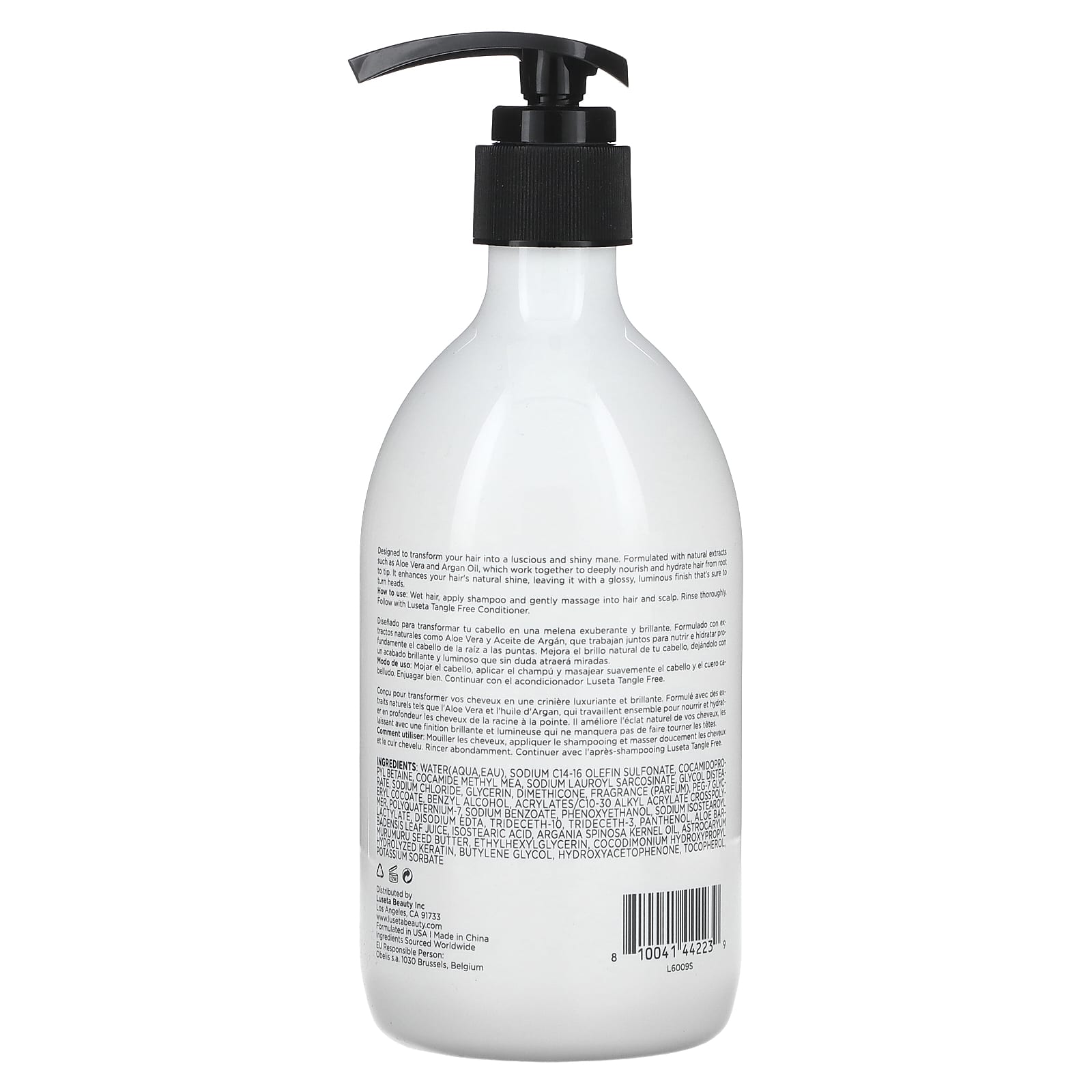 Вода, натрия С14-16 олефин сульфонат, кокамидопропилбетаин, кокамид метил МЭА, лауроилсаркозинат натрия, гликоль дистеарат, хлорид натрия, глицерин, диметикон, отдушка (парфюмерная композиция), ПЭГ-7 глицерил кокоат, бензиловый спирт, акрилат/c10-30 алкил акрилат кроссполимер, поликватерниум-7, бензоат натрия, феноксиэтанол, изостеароил лактилат натрия, двунатриевая ЭДТК, тридецет-10, тридецет-3, пантенол, сок из листьев алоэ вера (Aloe barbadensis), изостеариновая кислота, аргановое масло (Argania spinosa), масло семян мурумуру (Astrocaryum murumuru), этилгексилглицерин, кокодимония гидроксипропил, гидролизованный кератин, бутиленгликоль, гидроксиацетофенон, токоферол, сорбат калия.