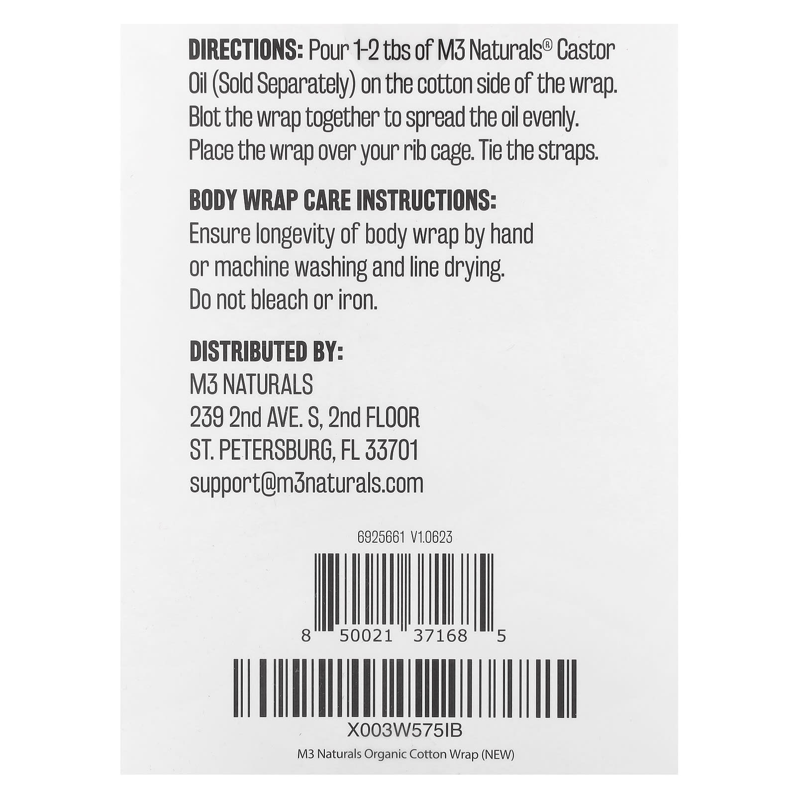 Налейте 1-2 ст. л. касторового масла M3 (продается отдельно) на хлопковую сторону салфетки. Промокните оболочку, чтобы равномерно распределить масло. Наложите повязку на грудную клетку. Завяжите лямки.
