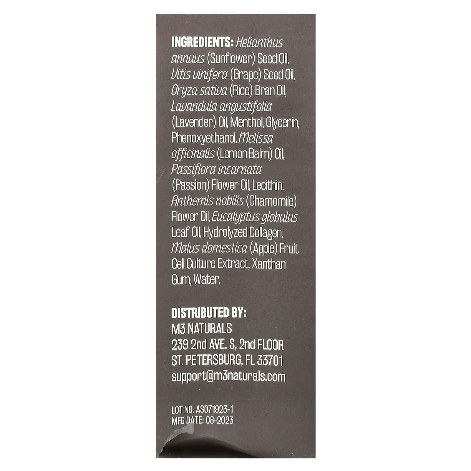 Подсолнечное масло (Helianthus annuus), масло из виноградных косточек (Vitis vinifera), масло из рисовых отрубей (Oryza sativa), лавандовое масло (Lavandula angustifolia), ментол, глицерин, феноксиэтанол, масло мелиссы лекарственной, масло пассифлоры инкарната, лецитин, масло из цветков ромашки (Anthemis nobilis), масло из листьев эвкалипта шаровидного (Eucalyptus globulus), гидролизованный коллаген, экстракт культуры клеток плодов яблони домашней (Malus domestica), ксантановая камедь, вода.