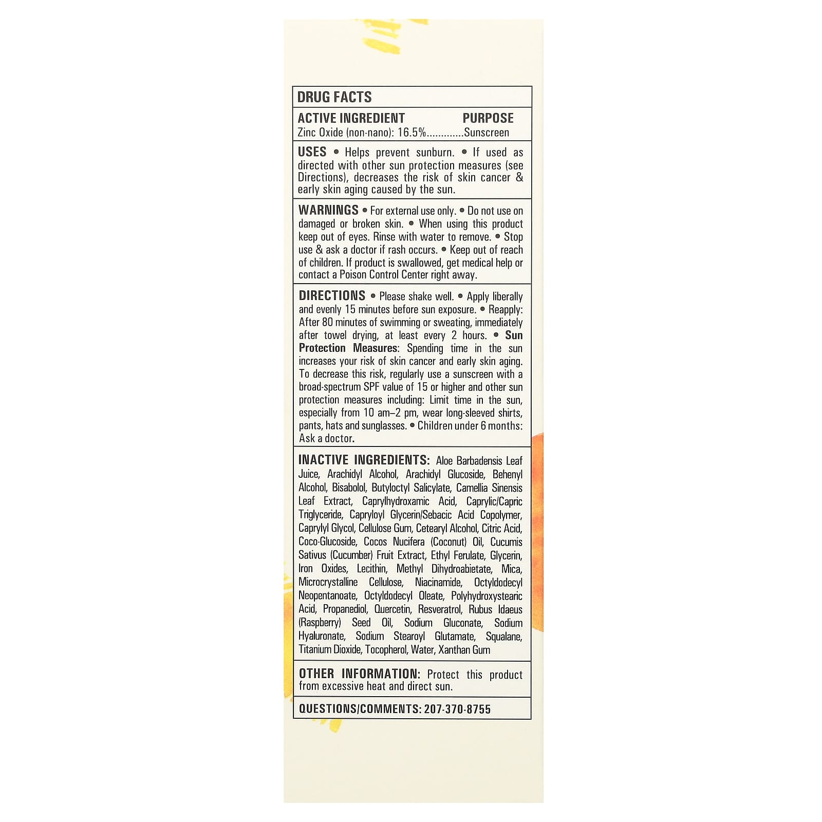 | Оксид цинка (не нано): 16,5% | Солнцезащитное средство |